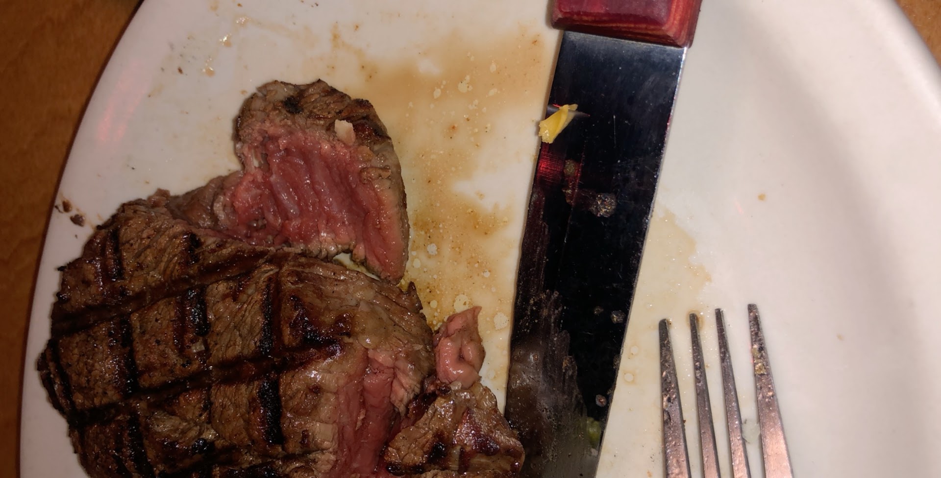 Read moreWe come here about once a month for dinner. Recently, more often than not, we have to send a steak back from the table (usually 4 of us) because it's over cooked. I've never left a review because we're caught up in the conversation of our company and enjoy the night. Tonight was worthy of a review, though unfortunately a negative one. Service was pretty bleak, and I'll leave that there. A second server brought our food out, and I had to request utensils to check my steak. Usually ordering medium rare to rare, I thought maybe it was a bit over done by its dry appearance. Cutting it open, we guessed well done. No big deal, let's try again. Steak goes back, 15min later after the rest of our party had finished eating, a second steak came out. Burnt on the outside, raw inside. I don't want to complain again so I give it a go. Cutting into this tough piece of meat revealed mostly fat/gristle. Tried to make it work but was unable to chew the pieces I was able to saw through. No waitress in sight, we wait about 10 min before I see a manager on the other side of the dining room. I asked him to please come to the table. He takes a look at the steak and very casually states "huh, yeah this has been happening a lot lately,I don't know why they can't get it right". Says he'll take it off the bill. Server still no where in sight. One baked potato and side salad later, we head out. What a disappointment to drive 40 min to a steak house without being able to have a steak. I'm giving 2 stars merely for the the atmosphere and cleanliness. Would I recommend? At this point, sadly no I would not. Even more disappointing was the managers response when we brought it to...