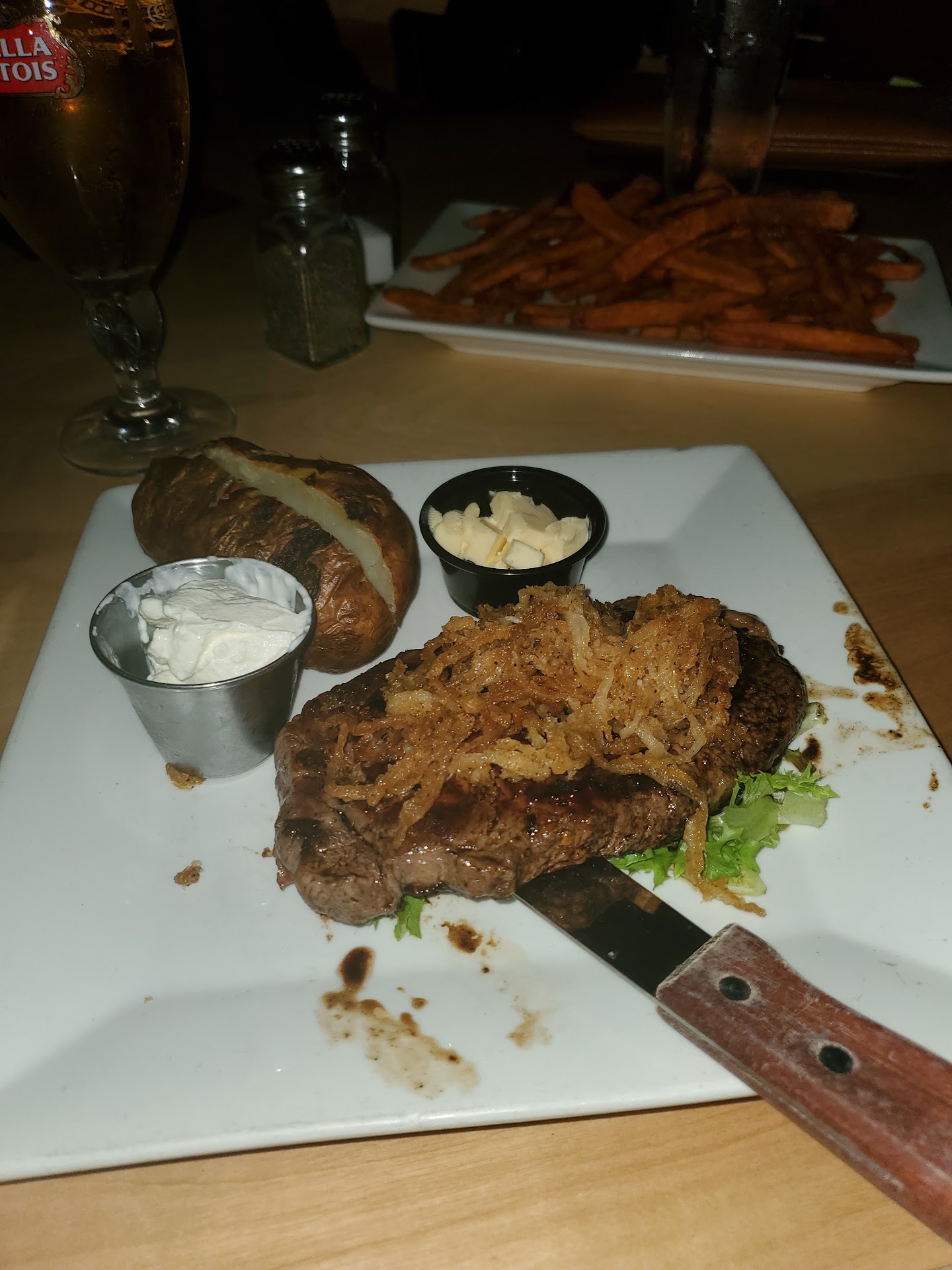Read moreHeading to the movies so we wanted to eat before heading there. Found Tom Foolery's and said why not. Walked in and waited about 2 minutes waiting on someone to come seat us. After waiting I walked towards the bar area and they were all talking instead of looking out for customers. After I got the waiters attention And then he seated us. Looked at the menu; wasn't that impressed but decided to stay. Ordered 2 Steak and ribs and 2 Chicken tender meals. The steaks were tough and bland. The steak was small and dry. The ribs dry and small. The tenders had no flavor but a lot of breading. The fries were flavorless and soft. The onion rings were soggy and GREASY!! The waiter was very nice. Won't say his name because this is not a good review. He tried telling us about the restaurant since was our first time there but the food didn't help his pitch. I asked if it was the same Chef everyday and he said one of the Chefs is part owner which was even more disappointing!! How as part owner you don't take pride in every dish that's made and served!! When we let the waiter know all he said was I'm sorry guys?! Wow.