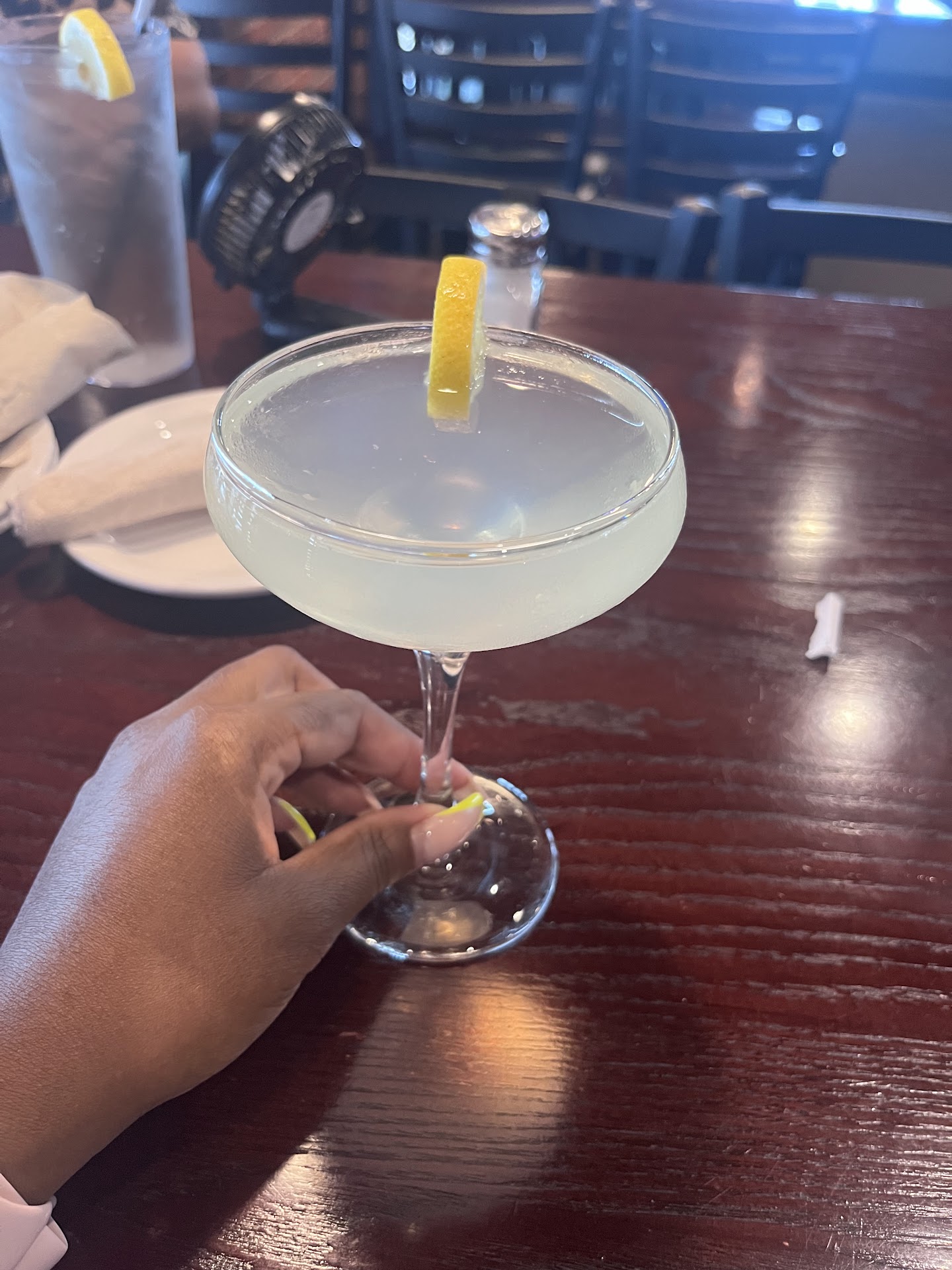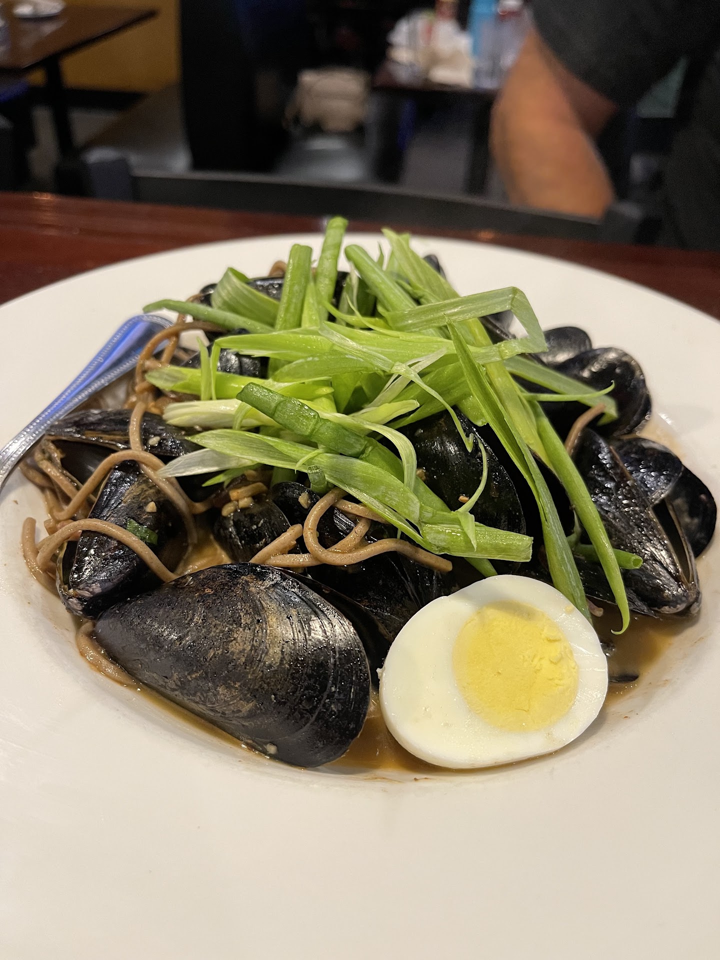 My wife and I went for dinner at about 6:30 on a Saturday evening. The was about a 30 minute wait because that were busy, but once we were seated, I noticed it wasn't a noisy place. The was music, but it was in the background and allowed for conversation.