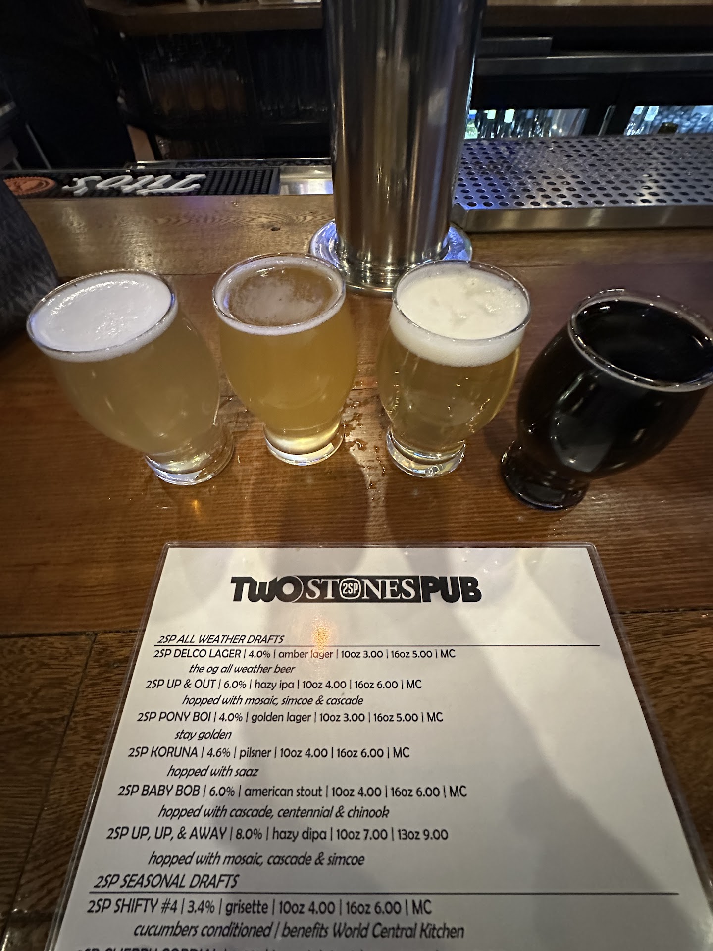 The other issue that all of us had was that seven different times on seven different beers on their list we were told: āwe are outā. Three different times after that we were told: āyou just killed the kegā. If you have an extensive beer list I expect most of it to be available. I am also not a fan of the rule they have about which beers you can get a flight of. There are only a few select beers you can get in a flight. It was okay for me to send my server back and forth to get me samples which takes more time than giving me a flight that I would be paying for.