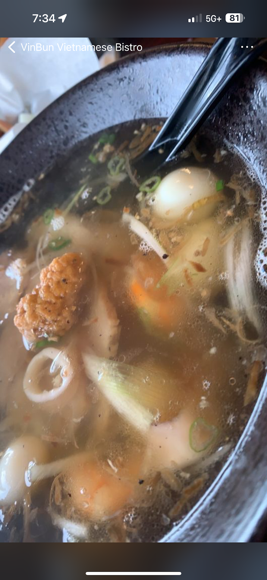 I had the Pho Combo which was horrible. The meat was very chewy and had a lot of fat. There were no knives, therefore I was unable to cut away the fat from the meat. The meatballs appeared to be processed and had little or no flavor. I ate only one meatball. I didn't ask for a “to-go container.”