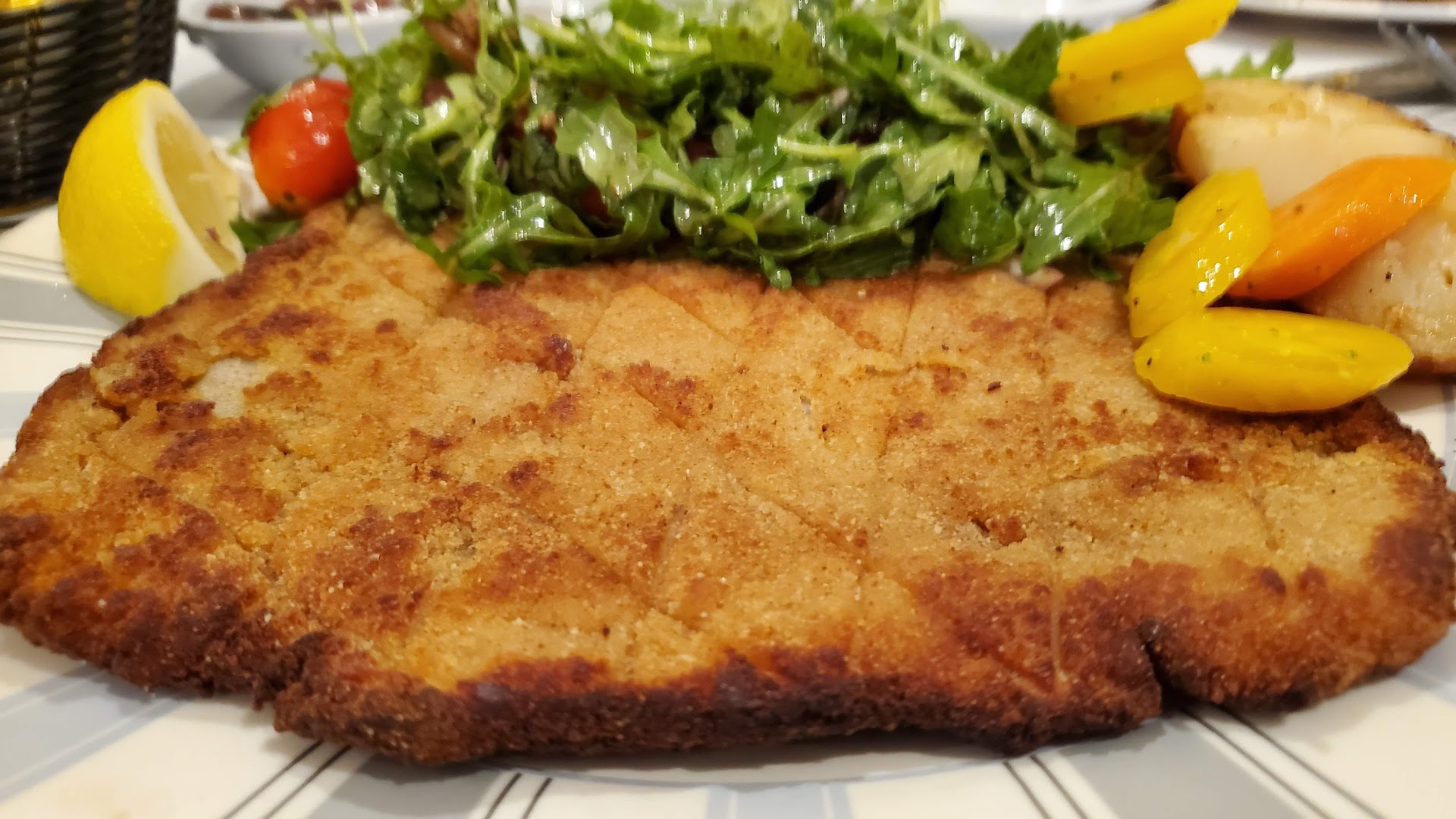 We began by splitting the Tortellini with prosciutto in a cream sauce. It was a nice size portion but it was overcooked, not al dente and not very flavorful. I ordered Chicken Saltimbocca and my husband ordered the special which was a stuffed pork chop with cheese and chorizo. My Saltimbocca was way too salty and the potatoes where very dry. Hubby's pork chop was over cooked and dry. They were both was nice size portions and it could have been a decent meal had it not been so salty and overcooked. The highlight was a shared slice of Lemoncello cake with marscapone, it was perfect balance of sweet and tangy. We might try it again because I like that they have a traditional Italian menu with reasonable prices and...