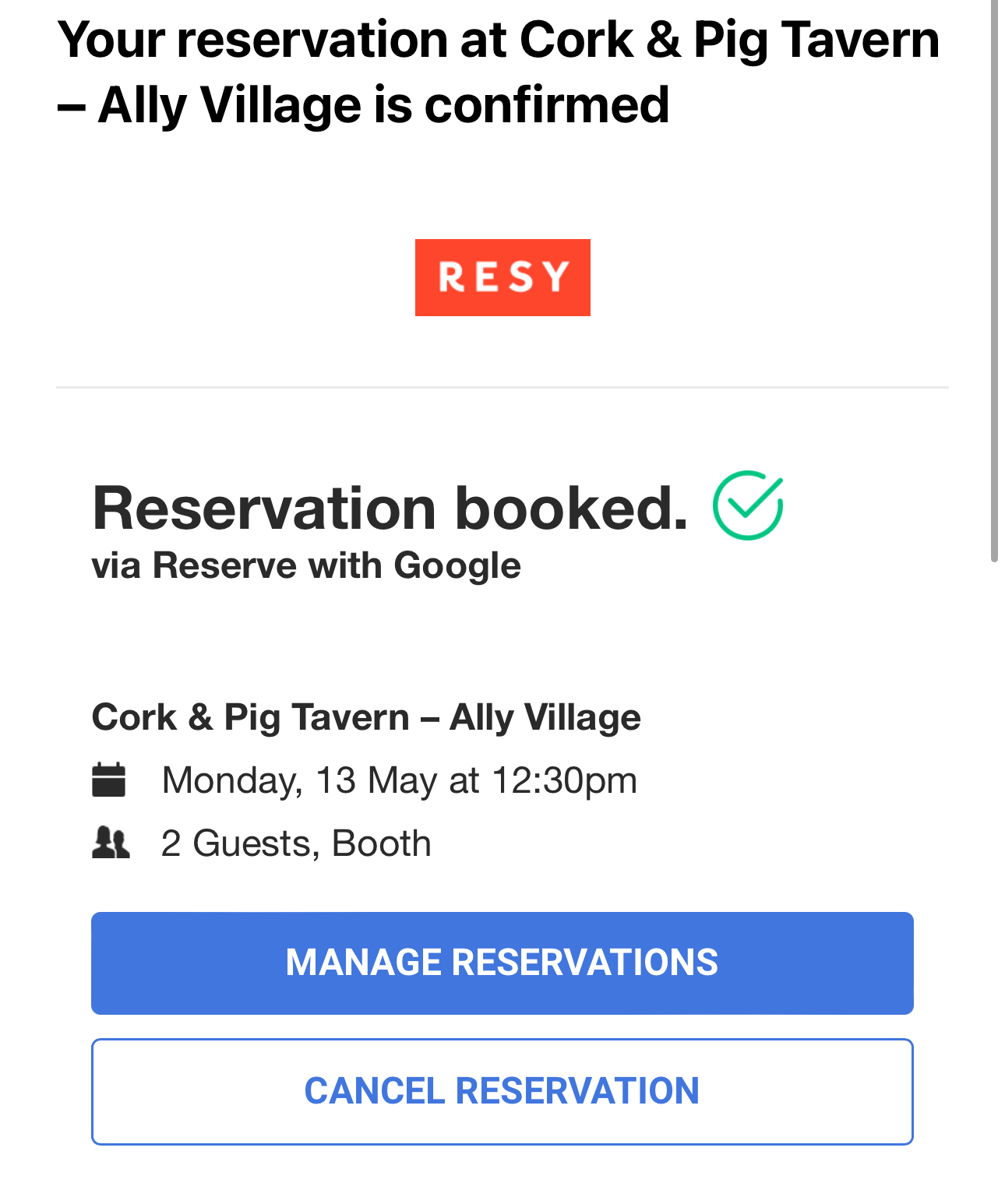 We go to cork & pig regularly! I called this morning to change the reservation I had for 1:00pm ( had it at 12:30pm)