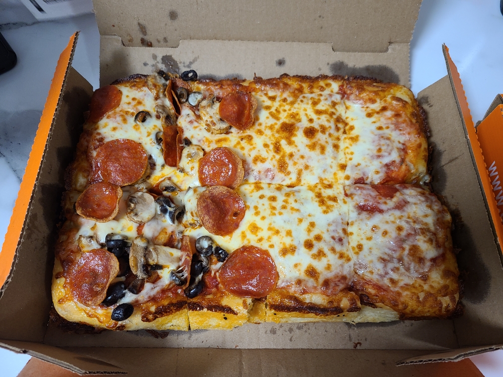 My bf and his friends always love the food. Normally a pizza with cajun butter crust even if he has to mix it and add it. Though today was weird. Never called in a complaint once but I decided to get some food (not a fast food person) so I got a small salad, my bf got a large salad and jalapeño cheesy bread. I took advantage of the items available and hooked up what I thought would be a banging salad. When I finally got it and started de-pitting the olives I was like woah where is most of what I ordered?!