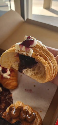 Read moreMy husband took me and my little sister to try for the first time. When you walk in, the atmosphere is so refreshing and it smells like a bakery. When we went, I believe they were making fresh new batches of croissants. So as we were ordering, they were bringing out all these flavors and we ended up buying almost 1 of each flavor for family as well. The croissant itself is just absolutely amazing! Itâs soft on the outside, but still crisp on the outside. They have filling in them depending on the flavor. We got Piña Colada, Oreo, Nutella, Pistachio, Cinnamon, & Tres Leches. Each flavor was absolutely amazing! I noticed they also had drinks and coffees. I wouldâve definitely gotten one to go but they didnât have any matcha and Iâm sensitive to coffees. The customer service was amazing, and they were super patient with us when deciding on what we wanted. Each croissant is about $8 I believe, but they are definitely worth it since theyâre so huge and have filling. Definitely would recommend to anybody in the Midland area or if needing a sweet treat after a Hobby...