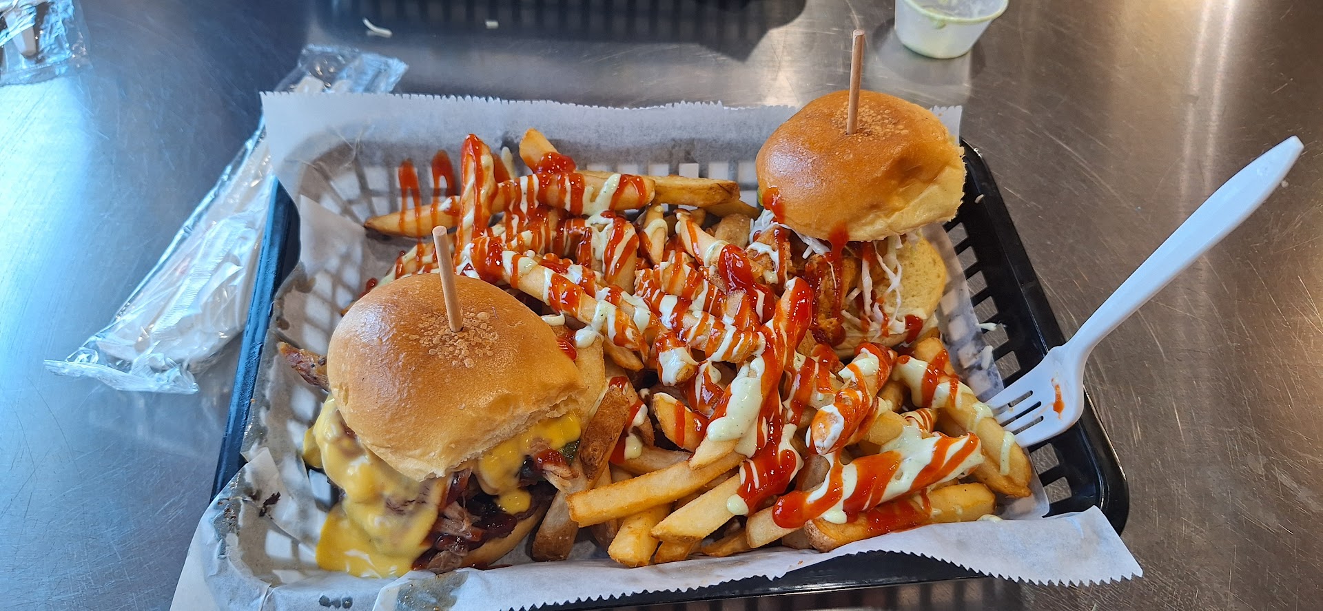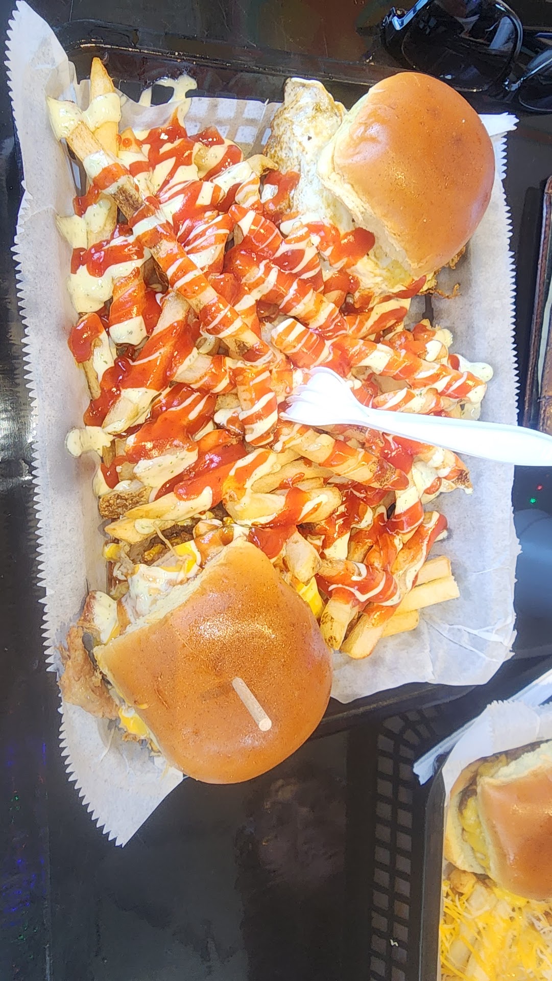 Read moreCurbsideBistro 8/10 BadMJ(A sweet & savory beef slider, topped with a fried egg, bacon jam, cheese and caramelized onions) - El Jefe(Beef slider topped off with cream cheese, roasted jalapenos, bacon, spring mix, cilantro ranch and pickles) cilantro ranch spicy ketchup fries