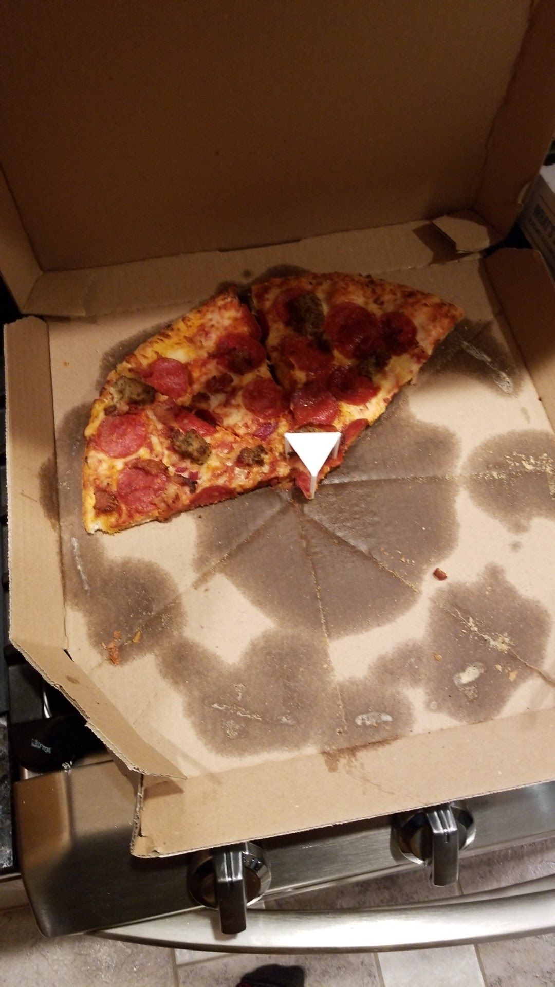 *(Pizza total based on adding in pre-set delivery fee-does NOT go to driver, taxes & added or "extra" toppings. ON-LINE ORDERING ISSUE ONLY: No such thing as "double" now, ONLY "extra" & even if you leave off an item, STILL have to pay for substitutions- BUT, NOT IN-PERSON?! At approx. $3 EA., inconsistency just...