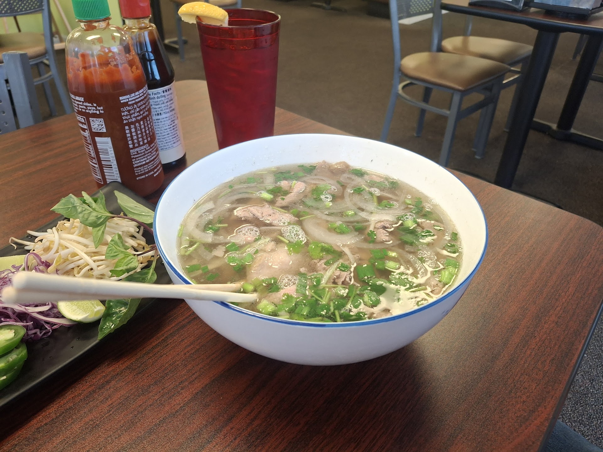 The food was okay. I still prefer other Vietnamese food restaurants in Midland. The pho here was okay, but it wasn't as delicious as I've had. My spouse's dish was also just okay. The host also served as waiter and he was not friendly or attentive after he brought our food. Twice, I had to wave him down to tend to tend to our simple requests. The air conditioner was clearly not working and the oscillating floor stand fan merely spread warm air. The music was nice. We plan to return and give the establishment one more chance, especially since the ac issue may not have been entirely their fault; especially if they're renting the...
