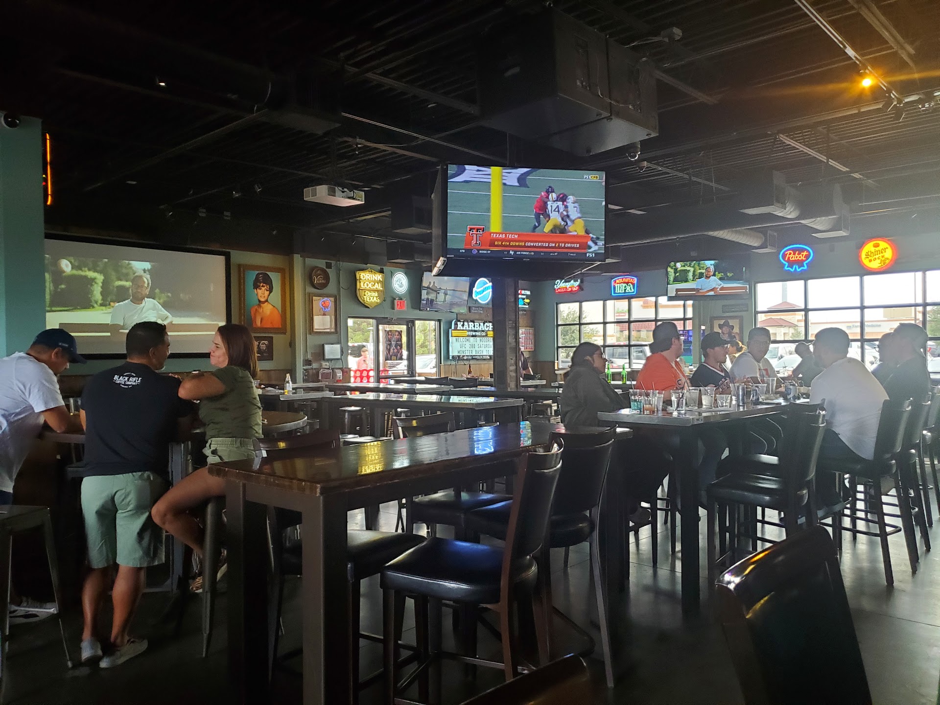 It looked like a nice happening sports bar at times better temperature times, parking might be a issue when packed. Ots of Tvs, good music, especially heard a good selection of Texas Country to various pre-20teens rock. I walked In no- doubt don't speak playing with the vid on a couple of Screens, walked out playing Kyle Park.