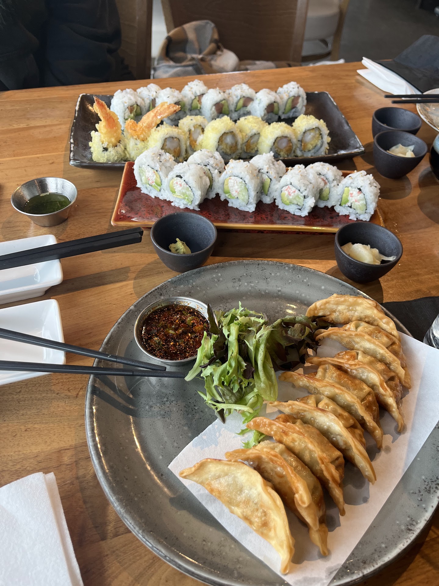 Read moreEverything, just everything, was perfect during my experience dining with Maru. Originally, I dined with a party of three, which grew to a party of five after we spotted some friends. The staff eagerly accommodated us by seating us directly next to each other, and even offered to rearrange tables and chairs if we wanted to sit together at one table. The food was lovely and delicious: I loved the Philly roll and the gyoza. However, the absolute stars of our meal were the crunchy shrimp roll and the chestnut tea. Speaking of the tea, our server was extremely hospitable, and when we asked what brand the tea was, they brought out the entire tea package for us to snap a picture of. This exchange would only account for a small percentage of the total, and the perfect service we received from the staff. Our server's recommendations truly elevated the dishes to an entirely different level. I would highly recommend two things: the spicy aioli and the delectable basil oil for your side salad. Speaking of the side salad, when my girlfriend and I ordered, we thought that since we only spent $16 (enough for a side soup or salad), we would receive one salad or soup because we spent only enough for one. It was to our surprise when our server handed us two salads with the best ginger dressing I have ever had in my life. That may seem like a small detail to some, but after bad food experience after bad food experience from other restaurants. It was very refreshing to be treated like our patronage was appreciated and not just a business transaction. Lastly, I want to add that the portion sizes are fantastic. My friends, who joined us after we arrived, have picky 5-year-old-esque palates. They ordered the hibachi teriyaki chicken, which they really enjoyed, and the portion sizes were huge. My experience at Maru was terrific, and I want to...