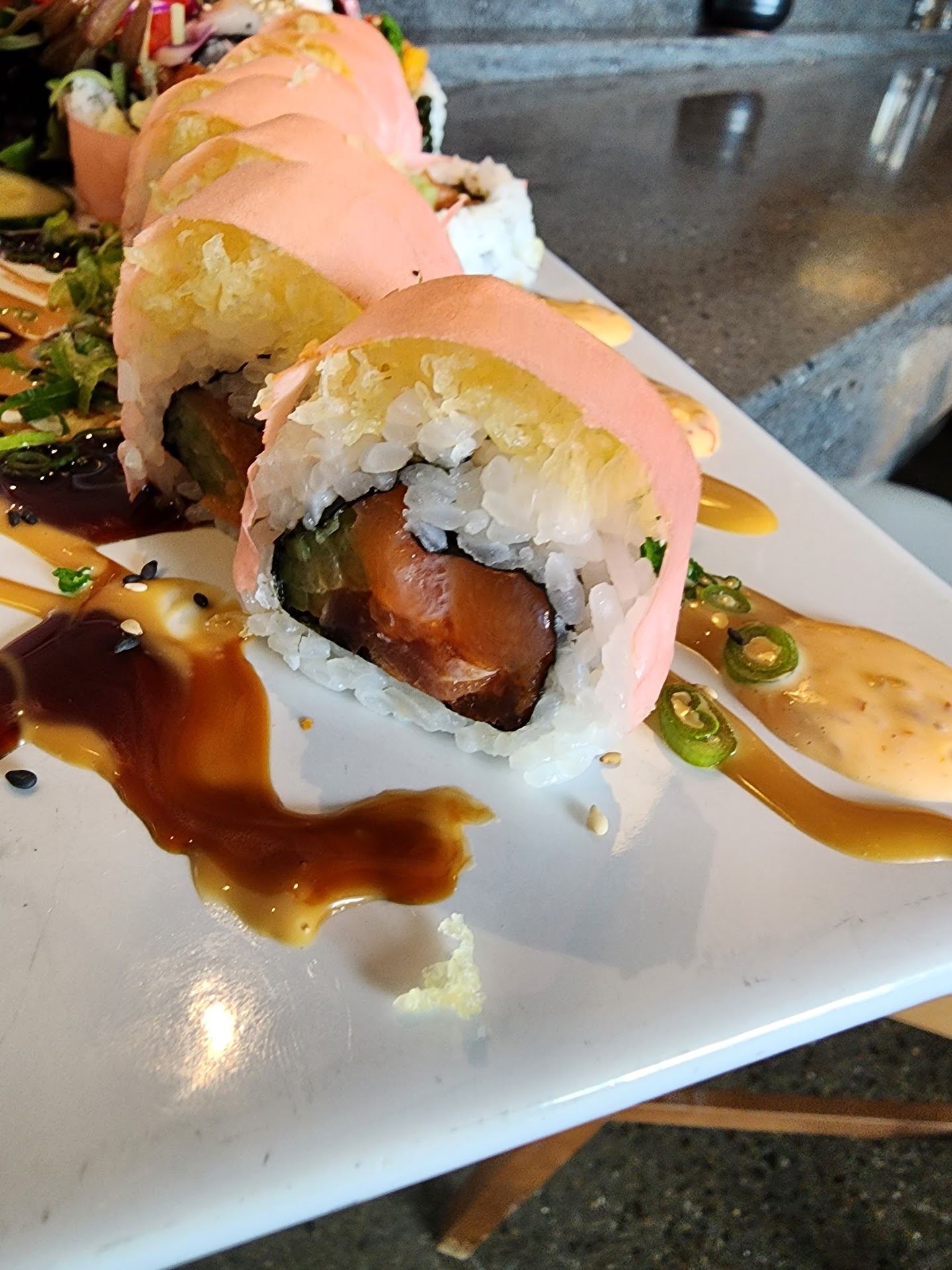 I harassed the heck out of these poor guys (in a good way, of course), and they put up with my bull, my questions, and my bad jokes. Not only did they roll with my bad dad jokes, but they also took the time to tell me about the different cuts & grades of tuna, about sushi in general, special events that come to the area, along with their different sushi specials throughout the year. They were just all-around pleasant, fun, and informative, and we had some great laughs.