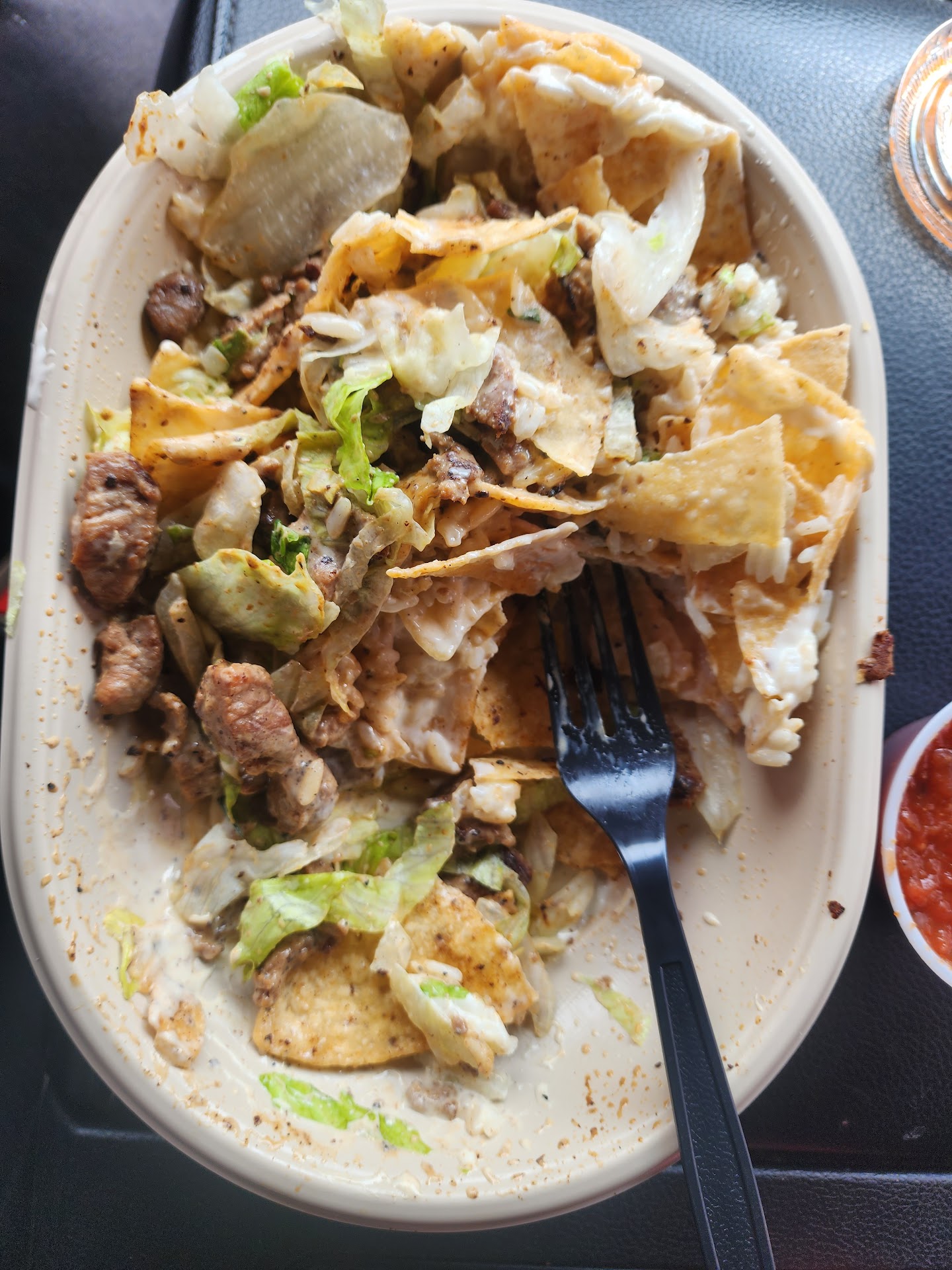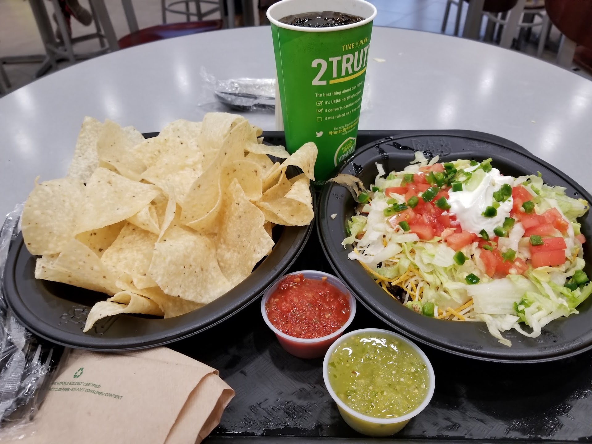 The bad: really long line (not their issue though, there is nothing around here). After waiting 20 minutes in line and I'm ready to order, they let me know their grill is not working. They aren't able to make the dish I want. So I get something else for the sake of time. Get through the line to pay and they charge me for queso fresco . I didn't get any I tell the rude casher. She said that's the cheese on top, the tiny amount of cheese crumbles. I let her know that the lady making the meal didn't tell me. She said to bad (that is never what you tell a customer!) You have to pay for it. The manager (or so it looked like) was standing there and didn't speak up. Would not return to...