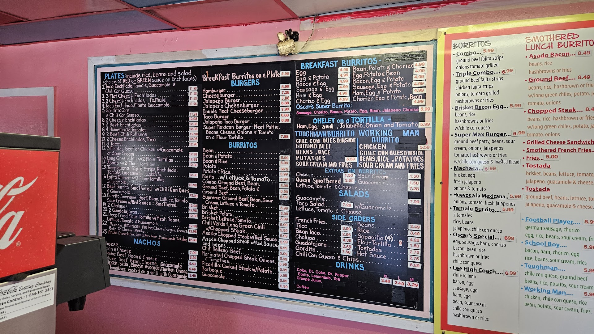 Okay, this rating is based on my first visit to this place. At first, I thought Google Maps was taking me to the wrong place. It is tucked away on a residential street and was easy to overlook during the dark early morning hours. The building was completely hidden in the dark with the exception of the lonely "OPEN" that was lit up. No other exterior lights were on! Once I decided on a place to park (no parking spaces were painted), and once I was able to locate the entrance (tucked away on the side), I entered to find a humble looking interior. I quickly realized this restaurant was formeto the rly a house, which explained the entrance door location through the former garage. It was empty at 7am, and no one was at the counter, so I stood there until an elderly man (maybe Oscar?) noticed me and called for the cashier. She came up and promptly took my order. I ordered Oscar's Super Burrito, which contained sausage, chorizo, bacon, potato, egg, beans, jalapeños and cheese. Sounds yummy, right? In less than a minute, she returned to the counter with a rather sizeable burrito. When she handed it to me, I immediately noticed that it was barely warm, which means it is pre-made fillings held in a warmer...NOT freshly made! By the time I made it in to work (5 minutes later), the Burrito was cold, and I had to nuke it. Taste wise, it had really good chorizo flavor, but there was no sausage, no bacon, and the jalapenos were pickled, not fresh. Overall, it's a decent burrito, but I don't think I got what I ordered. I paid $6.74 for this burrito, which is about average in this area. I will try again to see if they deserve more stars. It's a local Mom and Pop shop. Give them a try and see...