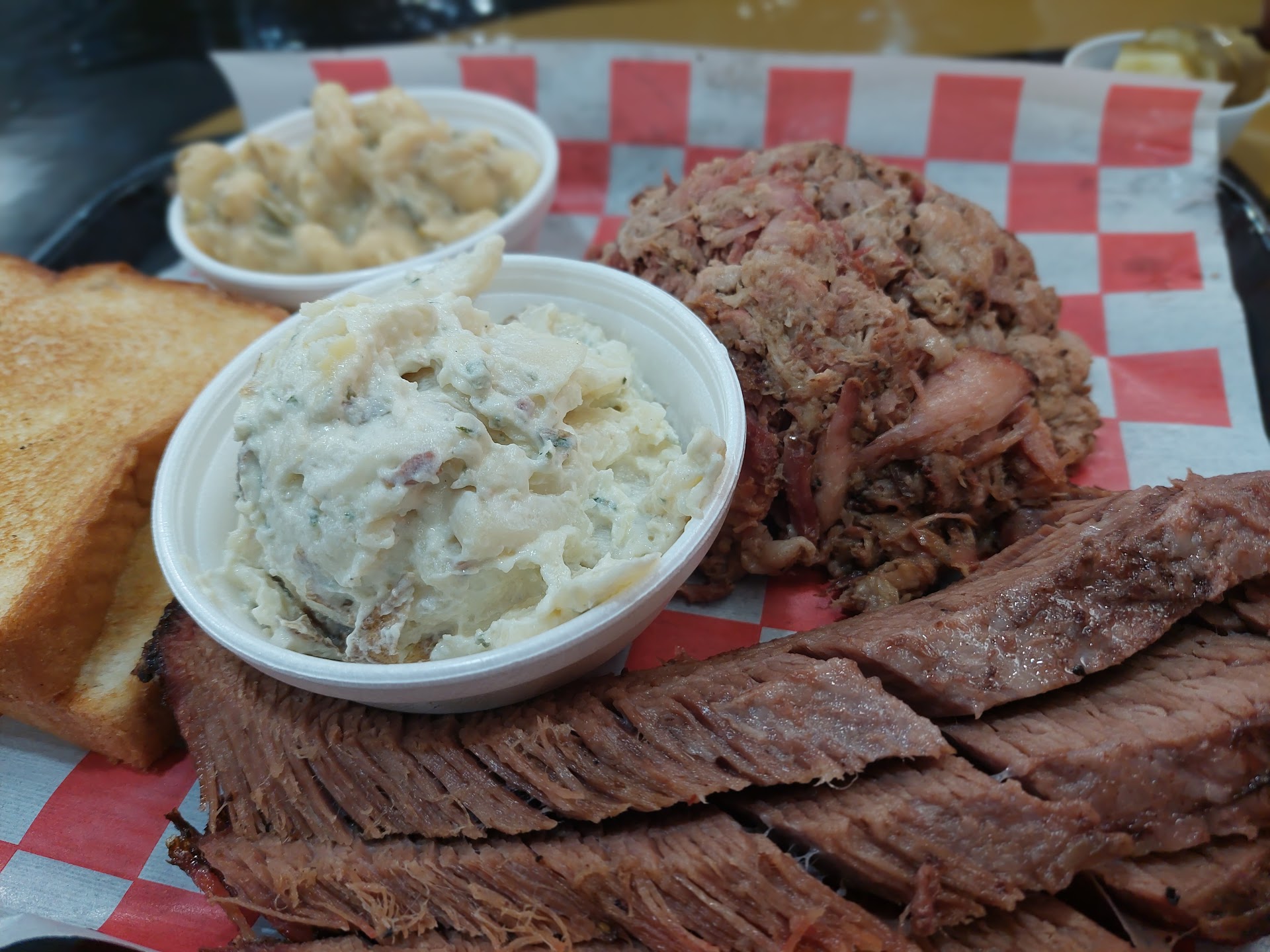 My sweetie stuck with her tried and true sausage, mac n cheese, and potato salad, all of which exceeded our expectations. For smoked meat, I opted for the lean brisket and pulled pork. The brisket in west Texas is usually a no-brainer. And Pachuco's didn't disappoint. It had a nice S&P crust, along with a beautiful pink-to-brown color profile. The flavor was excellent and enhanced with a dab of their homemade sauce.