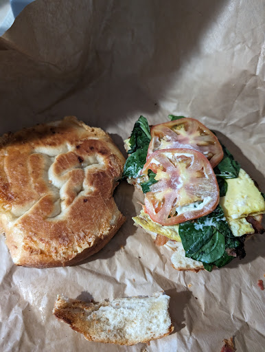The fillings in the sandwich were correct, however the amount received and quality of them tend to vary day-to-day and based on traveling experiences, store to store. I asked for crispy bacon and today I got it. Most of the time it's very floppy. The eggs were not as fluffy as they have been and the quantity was less. Spinach was good, but the tomatoes were on the green side of red. I asked for light salt and pepper but it was more heavy-handed than my taste prefers. The real bummer was not getting asiago focaccia as the bread.