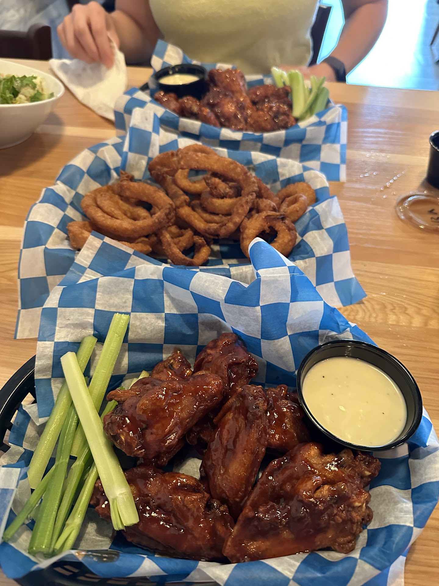 Read moreThought we would give Tavern On Main a try since it’s a new place in town. We really enjoyed our experience there! The service was outstanding; our waitress was attentive to all of our needs. We had side salads which were larger than normal for a side salad and I really liked the spicy ranch dressing. We each had 8 bone-in chicken wings with blue cheese and celery, which were excellent, and we shared onion rings which were very good as well; the only suggestion for those would be to offer some sort of special sauce for the onion rings. The food, drinks and atmosphere were excellent. The only thing I personally didn’t care for was the blue cheese dressing. My girlfriend thought it was good and she eats a lot more blue cheese dressing than I do. The waitress said that they make it themselves in-house, so it’s their own take on it; which is perfectly fine, just wasn’t for me. All in all, it was a great restaurant that we will add to our list of “go to”...