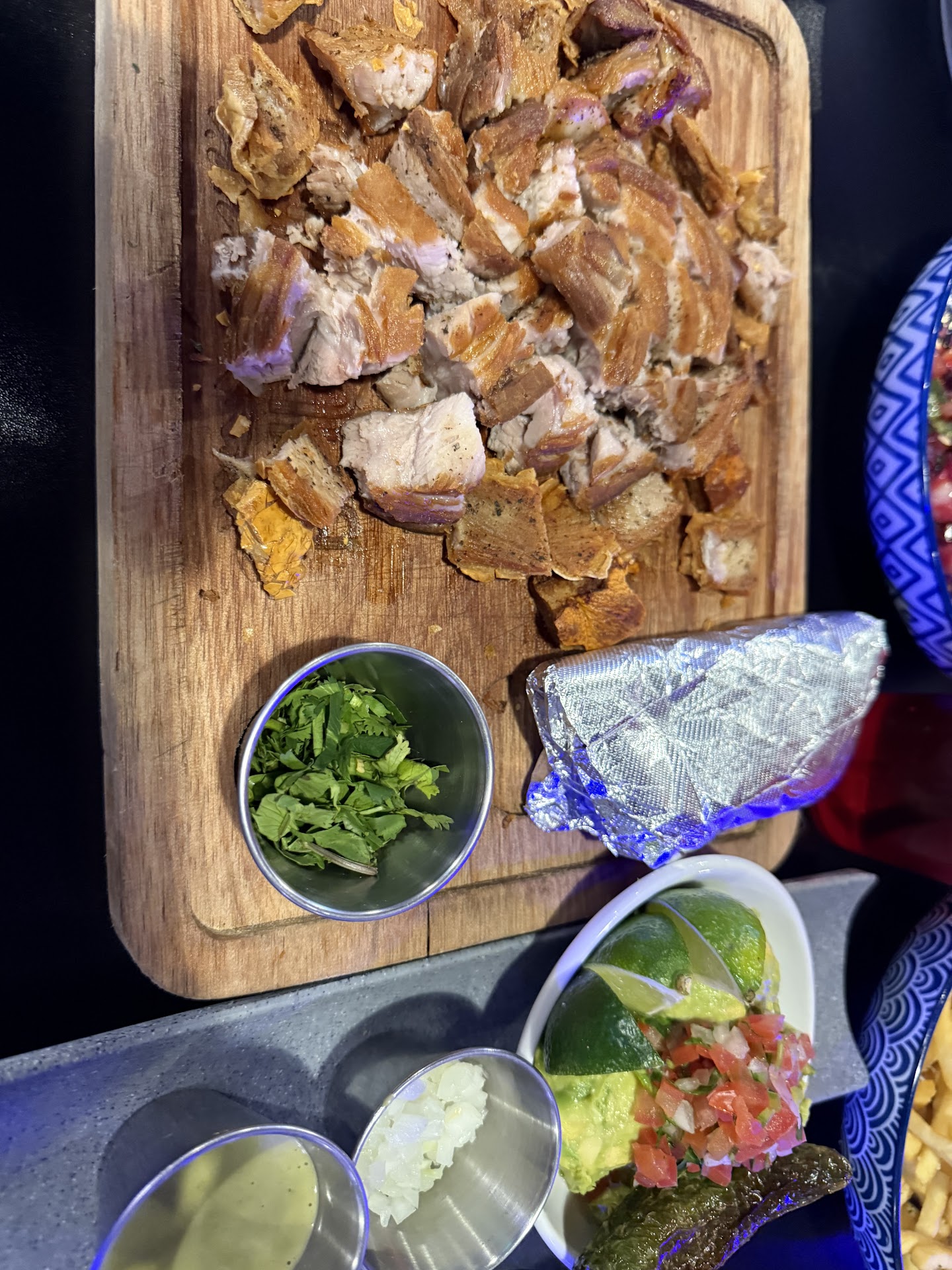 My wife ordered flautas, papa fritas, and some sort of shrimp and octopus tostadas. I asked them to make a drink for me that wasnāt on the menuāa spicy jalapeƱo martiniābut what came out was more of a margarita. Despite the mix-up, everything was absolutely delicious.