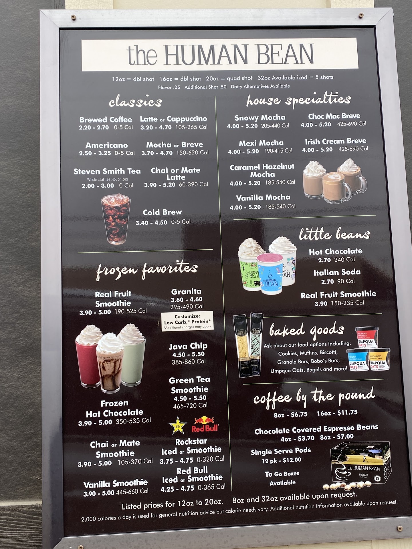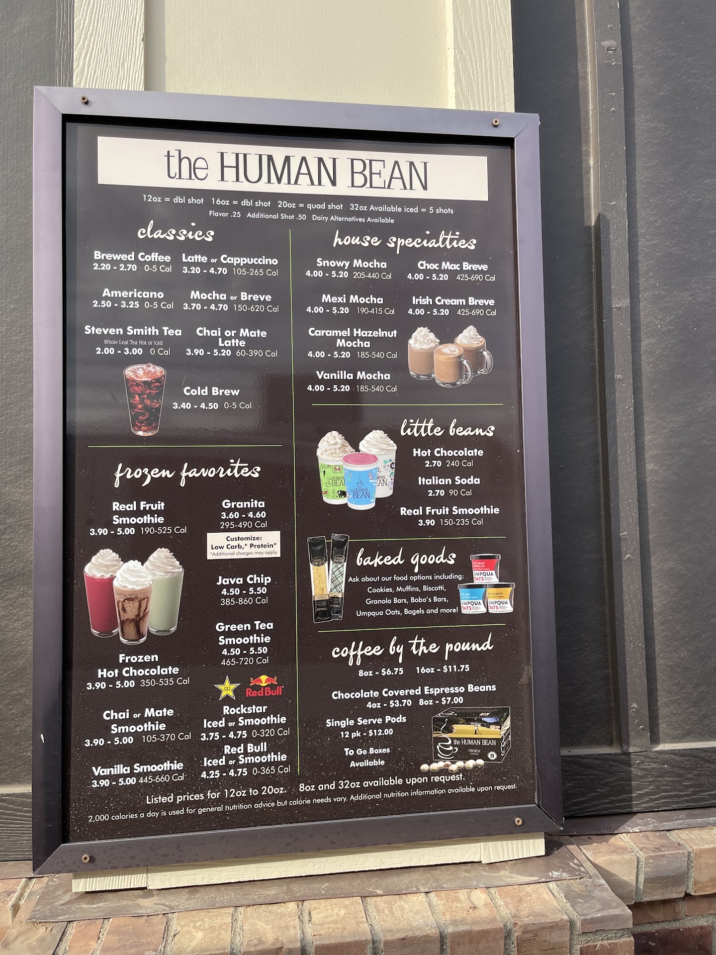 Also, things like Red Bull / Rock Star smoothies, frozen hot chocolate and the ability to add protein powder to several of the drinks makes this a great place to go no matter the time of day.