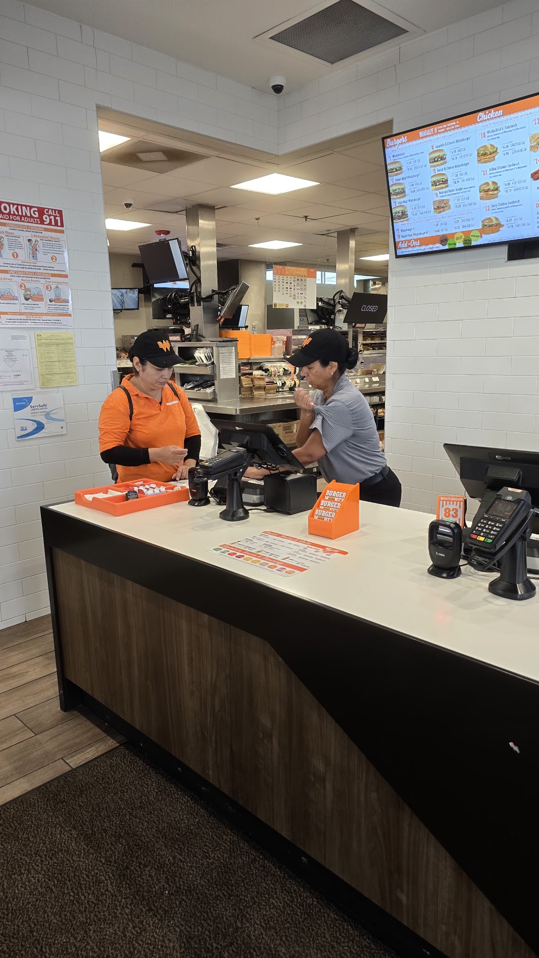 Read moreWe are from NM/TX transplanted to VA. Anytime we are traveling in this area we crave Whataburger. This location was a huge disappointment. We were hopeful because it looked new and clean. Firstly, it was freezing in there. When we asked if they could turn down the blowing air the rep stated the air wasnât on even though we could see their Christmas decor blowing all about. We were very clear about what we wanted and didnât want on our burgers and they screwed all four orders up. Third, and this must be why they keep it so cold in there- a junkie was in the womanâs bathroom as I walked in. He tried to come in as I was in there but luckily my husband stopped him. I know this isnât necessarily the restaurantâs fault but if youâre traveling maybe itâs best if you just go next door to Chick-Fil-A or just use the drive-thru if youâre not picky about your food. I think the disregard about the temperature in the establishment was the most off putting. Never...