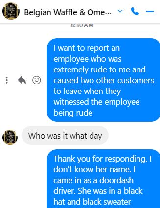Ā Ā Ā Read moreI was picking up food to deliver to someone else. When I got there a lady who I assume is supposed to work the register was standing around making small chat with another customer at the table. I was browsing on my phone and looking at the fish tank waiting for her to acknowledge me. After several minutes she finally came over and asked what I wanted. I told her I was here to pick up an order. She went back to the kitchen. A few minutes later I heard her bring out two bags and put them on a further table away from the cash register table. She didn't say anything so I didn't think they were for me. She is standing around again. After several more minutes she finally says the order is done and points to the bags. At this moment a couple comes in through the door waiting to be seated. I walk over to the bags but they aren't labeled. I asked which bag of food is mine or are they both mine. She snarked. Got an attitude with me and said I should know the order. I told her I did know the order but I don't know what's in each bag. They were unlabeled and I wasn't one who packaged up the food. How could I know? I showed her the order and she pointed at which bag was mine. I picked up the food, walked away and told he she has to be nice. She said, "Huhhhhhh??". I turned back and said "you have to be nice, lady". She said "I was nice!". I said no she wasn't and walked out. As soon as I walked out the couple walked out too and the husband shouted over the parking lot to me, "I wouldn't eat there either if I was treated like that". Him and I both laughed and he said she didn't seem very nice. After I dropped off the food, I called the place to speak to the manager. A lady answered and she said there was no manager and told me she doesn't know when the manger will be in and hung up. I'm guessing that was the lady I had an issue with. I tried to message Belgian waffle through facebook and thought it would go somewhere. I got no apology and whoever I was messaging didn't even say they were going to look into it. I got ignored. I thought this lady had a bad day but looking on google reviews this place is horrible. Bad reviews on the food, place looking outdated and even some had issues with the staff. I have never eaten at this place before...