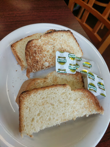 My wife and I came here Sunday around noon looking for a breakfast lunch sit down restaurant. The restaurant is located in a strip mall on the south side of fort union. I will say I originally missed the entrance because the sign threw me off as it's not typical for an eating establishment. It's multi-colored letters remind me more of a daycare or toys r us. The dining area is pretty basic with a set of four booths and a couple of rows of tables with a few seats available at the counter. There are a few tables outside but since today was cold they weren't in use. We came in and all tables were full so we put our name in and say on the two chairs they had for waiting and we were right next to the end table close enough to have a conversation. I tried not looking at them so I wouldn't make them uncomfortable and started gather information for this review. However it could get crowded very easily. It took a few minutes before we were seated at one of the tables and our drink orders were taken as we were seated. The drinks and waitress arrived a couple minutes later. I ordered Nick's original roundhouse and my wife ordered a burger keto style with a side salad. The food arrived about ten minutes later. Nick's original roundhouse consists of a bed of hash browns with melted cheese, then stacked with two pieces of bacon, two sausages and a slice of ham (Canadian bacon?) And topped with two eggs any style. It's a little bit reminiscent of garbage hash that hasn't been mixed up. Overall it was a good meal, decent portion, everything cooked well. The toast comes dry but with packs of butter if you want buttered toast. Service was quick and efficient. Good overall experience and I am sure we will come back to try another dish since they have many...