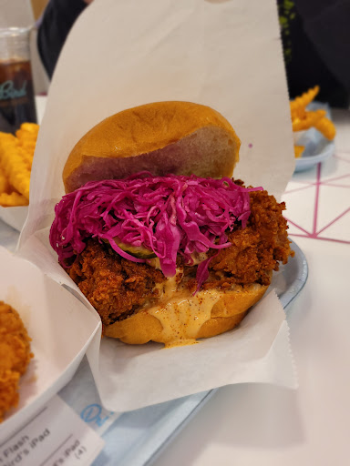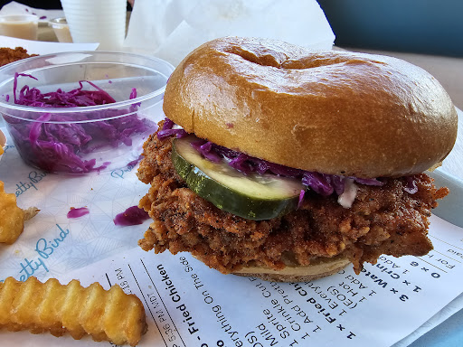 Why didn't I come here before now? I saw the Midvale Pretty Bird many times while shopping at Winco but never came in. So I decided to treat myself after a long, hard day to try their hot chicken. Their store is small, but holy cow, it is immaculate inside. White tiling gives you a vibe of a diner. They also have a patio area as well; had I not taken my order on the go, it was a wonderful day to do so (swimming is a little more questionable this time of year). The only downside some might have is that you order via tablet rather than a traditional cashier. However, that is something I do see with many independent restaurants these days; that aspect of the service is up to your preference. This is different than the traditional Nashville Hot Chicken. It's a dry rub, which might discourage some, but it's interesting. I had the Fried Chicken Sando combo with an extra tender. Nice thing here is that you can pick the spice level as well. I went with hot... but not quite Hot Bottom. When I bit into the tender, it was big and moist and that heat is assertive, but not aggressive. Almost swore tasting a hint of cinnamon in that rub as I tasted the skin. But that got me anticipating the sando. I also chose the Pretty Bird sauce and for their take on fry sauce, I like it. That's coming from someone who doesn't Iike most fry sauces. Goes good with the chicken and the fries. The fries were crispy and denser than many fries, but with the chicken, it works. The chicken sandwich, done traditionally, has the sauce, pickles and slaw based on red cabbage all on the sandwich. Having my first bite, I could tell that the slaw and pickles really pair well with the chicken. Couldn't really pick the sauce that well, though. After that, I added some mayo, having lived in the Old South for about six years, is how I like my fried chicken sandwiches, especially spicy ones. The mayo also works with the chicken. Couldn't quite finish the fries, but I devoured that Sando. As mentioned, it's too bad I only tried it now as I am moving away. Would love to come here again if I find my way back to the...