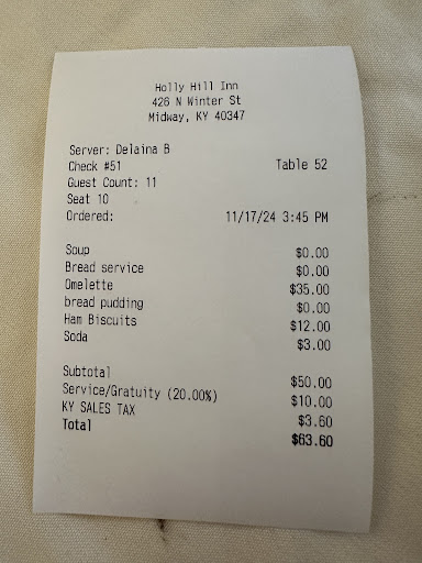 Read moreDespite its charming setting and warm initial welcome, Holly Hill Inn delivered a deeply flawed dining experience that fell far short of fine dining standards.