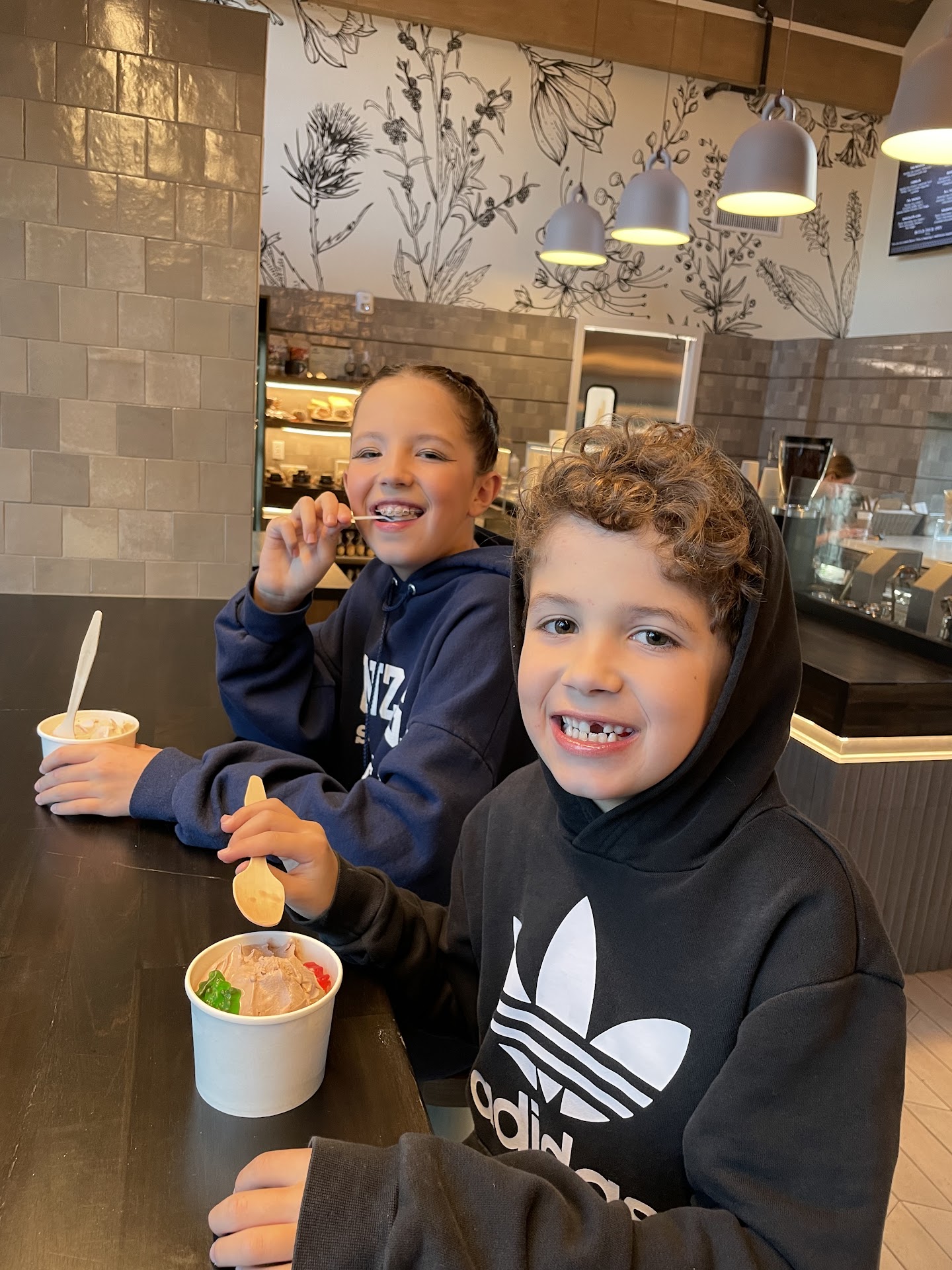 Read moreOh this place was SO CUTE! I had to resist the urge to order some of everything just to taste. I started with coconut and raspberry ice cream & I should’ve stuck to the sample because I wanted to eat food and take the ice cream home lol it was perfect! Then I had a chicken pesto spinach wrap which was toasted and also very tasty. It was fresh and high quality unlike the food at America’s favors asterisk/dollar bill coffee shop lol I was pleasantly surprised. I also had a lemon donut which was quite literally thee best donut I’ve ever had! I had a bag of natural kettle chips and they set the wrap off. They had cute little games on the table and it was reminiscent of a quaint coffee shop in a small winter town! I loved it and will definitely be back!