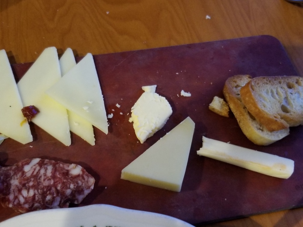 We got the charcuterie (cheese plate) appetizer that others had talked about despite poor reviews. We were very happy! It was filled with a variety of (they said local) fresh cheeses and artisan meats and pickled vegetables and figs just as advertised. It reminded us of other similar plates we had tried from other restaurants.
