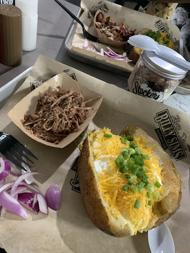 Read moreMelinda has the best food customer service me and my husband have ever experienced!!!! 💞 she truly made our holidays. The first time we came was absolutely amazing she told us about the refillable cups to save a little extra money on your order when you bring them back next time and she would remember our faces! (We also love refillable cups to collect lol) we got the loaded spuds to go they were sooo good but the next time we came in this time we wanted to sit down the environment was great and indeed she remembered our faces! We got the same food and the potatoes were so good and seasoned and just over all felt and tasted like southern bbq home cooking. Not to mention their sauces are amazing and they sell them as well as the seasonings for great prices!! We also got one of the dessert cups up front and omg it just melts in your mouth!! We will hopefully become...