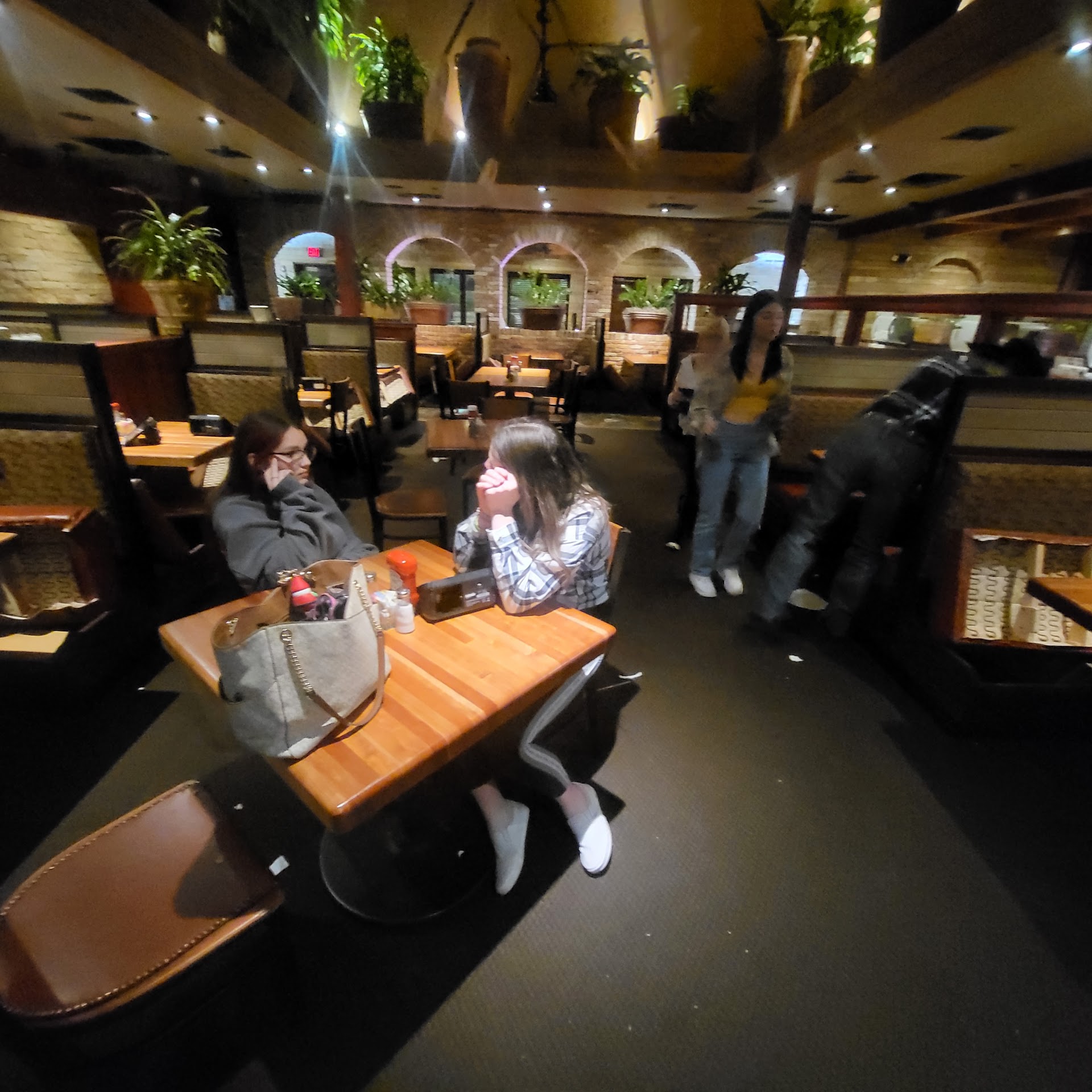 Servers are always nice and helpful. Last time we went we asked the hostess to not seat us near kids and she sat us by an infant. We moved ourselves back a table and mentioned it to the server. She must have mentioned it to the hostess as the hostess asked why we moved. When I said we requested not to sit by kids, she threw me attitude and said it's just an infant. My response was, yep that's a kid - she said what's an infant going to do, I said maybe scream. Then she gave us a look and left.