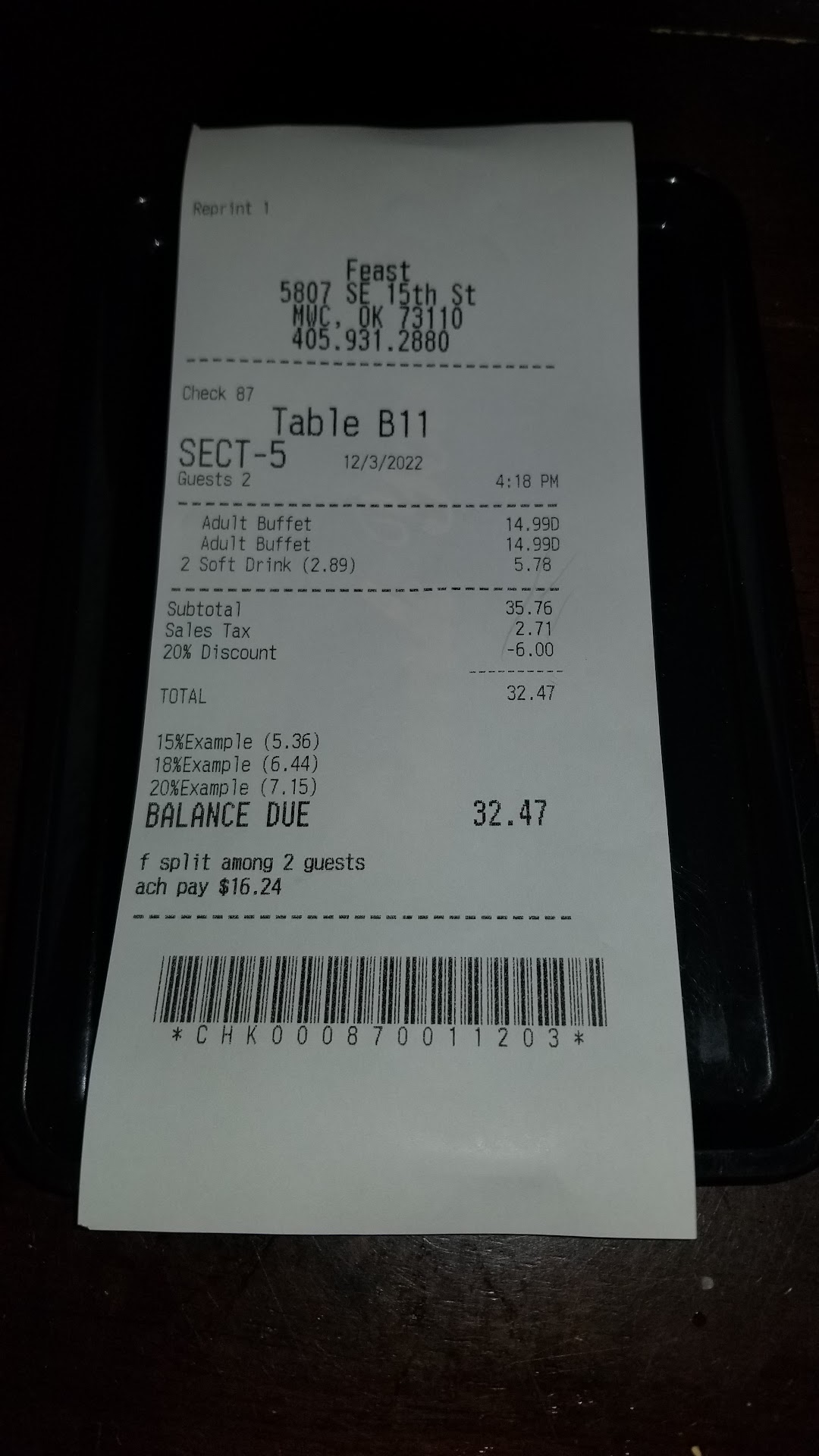 Old review: I love this new buffet in Midwest City. It's very affordable, and has a huge choice. American, Italian, Chinese, sushi, curry, you want it you find it. Lots of healthy choices too, not just deep fried (even if there's a bunch of deep fried - I recommend the green beans with spicy mayo - the mayo is in the batter and they're delicious) Their dessert options are really exceptional, both in variety and in taste. And I mean, exceptional. Try the tiny square cups with custard cream, especially the mango ones. The thing I like the most is the fact that, being on an Atkins diet, I can find a lot of options there. Including sugar free deserts. The only thing that I noticed is pretty much a hit or miss is the steak. About 1 in 4 pieces are grilled correctly, the rest are overdone, dry and tough. Everything else is delicious. They even have a gelato station. The only thing I do not know how it tastes is bread, because of my diet. The place is clean, staff is very nice and professional. It definitely doesn't look like a low cost buffet, and it's an immense difference from the only restaurant we had in Midwest City until now - Golden Corral, where everything looks like it's been there since the 70s, food is so salty you keep needing to drink water for the rest of the day, and there are no healthy choices except...