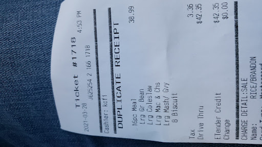 Ā Ā Ā Read moreI have NEVER been treated SO poorly especially by a manager. We bought a 3 piece meal was requested that it be all legs , original recipe. The meal was for my son who is absolutely the sweetest , Most kind soul you could know. He didn't even want to send it back he'd usually rather deal with whatever but I insisted because it was awful! They gave 2 wings one leg the oil or something had to be old because it was so bitter. The fries were SO bad stale and stiff. The biscuit was the most decent part. The girl at the window wasn't real happy but took the food and told me to come in. I did and a worker said James will be out in sec. I was kind , had a smile ( not even kind of upset rude) James came out Said what's the deal? I said , " he said the chicken is bitter " I can see the fries are old hard and stale and there were supposed to be all legs I said that the lady had already taken the food at the windows and through it away. He then says that he knows I'm "lying " that he just pulled the chicken. I said I have no reason to lie but that it wasn't my food and it was my sons and that he absolutely had no reason to lie ,he literally hates complaining and I know something is awful when he complains because he just doesn't he will just eat it bad or not and usually I will too and mostly for this reason right here. He proceeded to mock me when I said I'm not a liar my son is not a liar and that's hurtful that I didn't understand why he was being hurtful or argumentative when I come here often and am more than kind and he said " awe poor baby what will you do? It's just the worst thing that could happen to you " He kept taunting saying ok liars you can go ahead and never come back. I left in tears and come to find out he is the manager š They all seemed to have his back and I felt like I was in Jr high being bullied all over again. Idk why he chose me today but others should know because the way I was just treated could really push someone who's having a horrible time over the edge. Thank you for reading this guys and have an amazing...