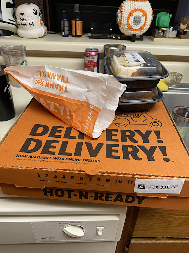 I proceeded to ask her, "So were all out of luck and options here?" And SHE HANGS UP ON ME. My dad called since he had the receipt, and she argued with him, saying, "I told her it was burnt." Why would I put it in the over if it was burnt? So she wasn't even listening to me when I was explaining the situation. My dad is high risk and won't be picking it up and taking it back, and I'm not going to put no telling how many people are at risk over a pizza box.
