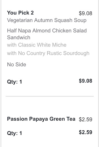 Read moreMy office orders lunch from Panera once a week. The last 4 times we have ordered, at least one portion of our order (which was paid for in advance) was not actually given to us when the order was picked up. I understand that with bigger orders things sometimes happen, and sometimes things get left out by accident. But four times, we have ordered something from them (our orders typically cost between 50-100 dollars) and four times now, something that was paid for was not provided. Last time it happened, I called the restaurant and was assured that it would be taken care of and it would not happen again. Today, we decided to order again from Panera. Out of an abundance of caution I called the restaurant after placing our order, and politely asked the person I spoke with (whose name she said was Tammy) if she could please make sure that this time our entire order is complete and included. She hung up on me in the middle of a sentence.