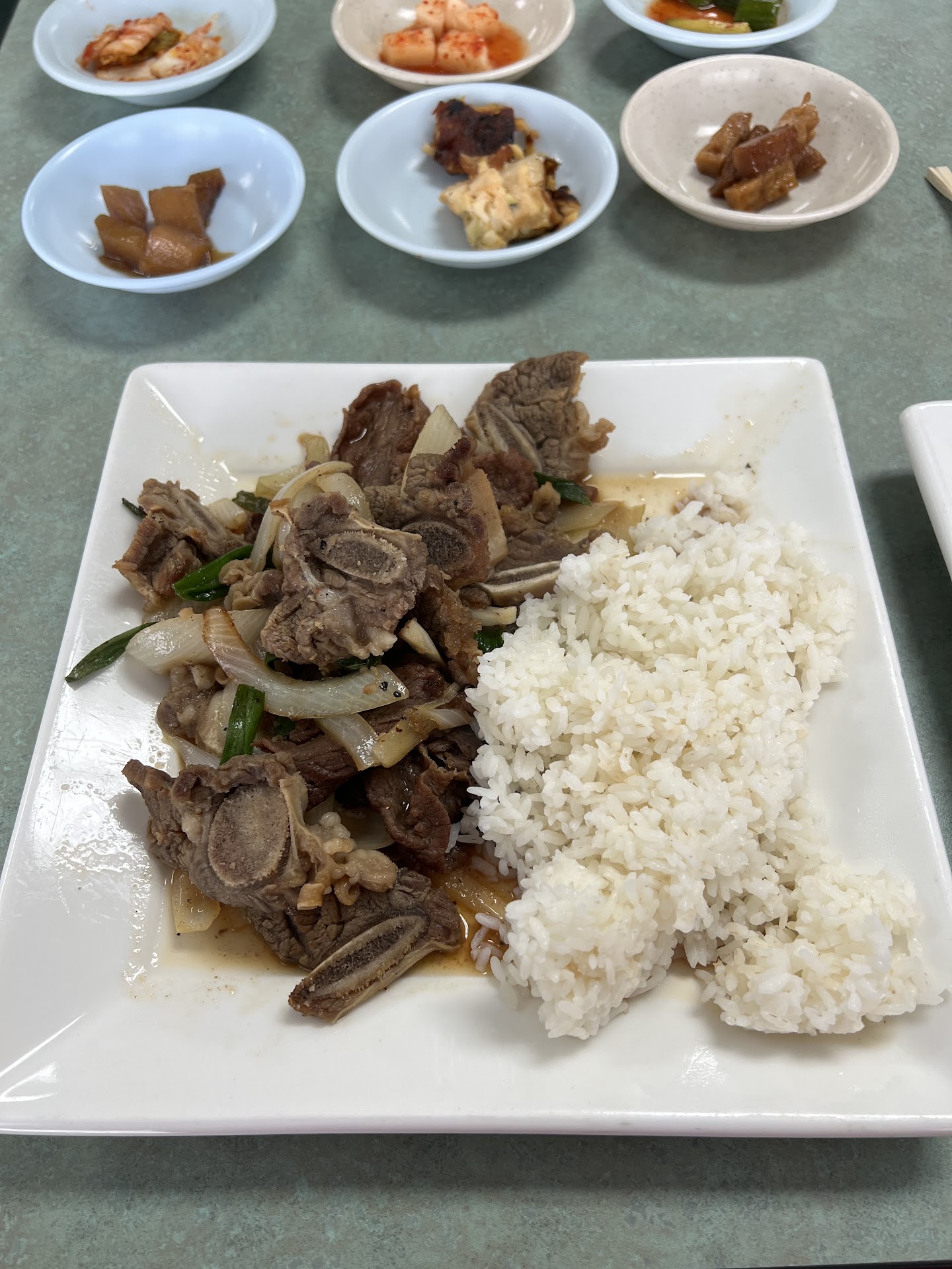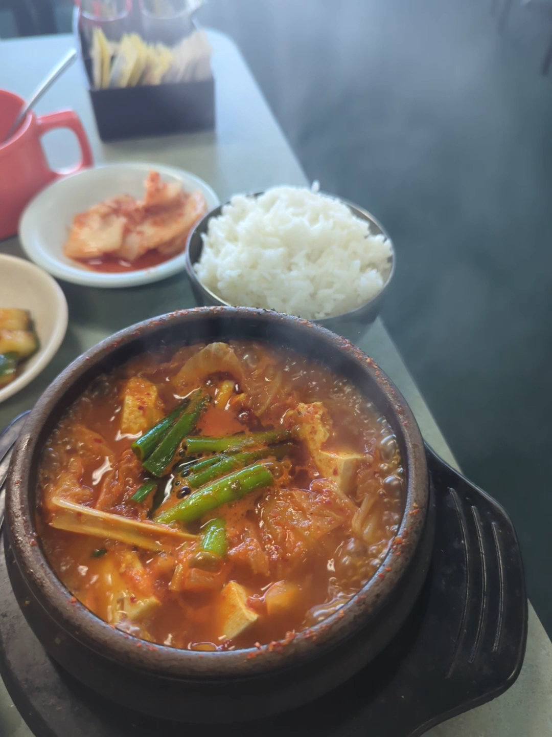ย ย ย Read moreGreat discovery! Flavor is great, portions are generous, and staff is so kind and attentive it just makes it better. I went on two different days. First time ordered the kimchi-jjigae and kim-bap, didn't disappoint! For being the first time trying both dishes I was pleased with them. The second day I ordered Yook-gae Jang and again, full of flavor, great portions and so comforting. Each entree comes with a side of sweet and sour chicken(3 pieces), an eggroll, a side of potatoes, kimchi, radish kimchi (not sure about the correct name), pickled cucumbers, fish cakes and pickled red cabbage, all of them come in small portions but still great! Words will never make justice to the flavor, it definitely tastes homemade. I almost forgot to mention their miso soup station! Also tasty and you add how much or less ingredients you like in it! Don't forget to taste the barley tea, it was refreshing and light! Definitely better than your regular "iced tea". If you're in the area looking for a good meal, and don't care much about the ambiance not being fancy or such, pay this place a visit, it won't...