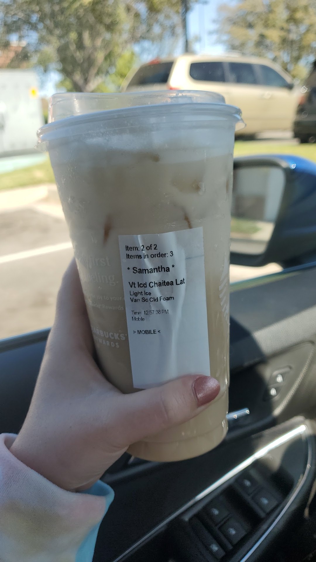 Read moreI have been to this place three times now. I was very disappointed in this trip. I ordered online, as usually so that I didn't have to wait. It took several minutes for them to get to me, I understand they are busy but if the company is offering this service then they should take care of their customers. Anyways I got my drink and headed out, because I have been burned by hot beverage I didn't drink it until I was on my way to work. It didn't taste like what I had several days prior. I then opened the cup and noticed that they didn't add some of the toppings I requested but it was on the label that they stick on the cup. I was disappointed in that. The drink tasted watery, like the barista didn't have the mixture correct and added more water than needed. I kept drinking it hoping it would get better but I was wrong. I was contemplating if I should throw the six bucks drink away. I ended up throwing half of it because at that point it was wasted calories because it was tasteless. Definitely disappointed in this place and this was the worst drink in ten years.