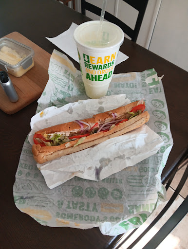 Great sandwich made with fresh bread got the BMT with extra meat & cheese loaded up just the way I like it!! Went there kind of late, there was only 1 guy working, he was Busy the entire time with the drive thru & walk in customers but the wait was minimal. He was polite & made my sandwich just the way I asked him to. I'm very particular about the way I want my food, it didn't seem to bother him he was very patient. He answered my questions about the wraps they offer & other menu items. He marked the sandwiches so we would know which one belonged to who when we got home! It was a good visit & I will continue to return there for my sandwiches. The place was clean and very organized, he continually changed his plastic gloves when he made different orders & handled money. At 1st I was concerned about him being solo but he handled everything with great detail & ease & was polite in the process. It was busy the entire time we were there & even had customers coming inside & pulling up to the drive thru when we were leaving!! People know where there is a good place to go for good food & the amount of business spoke volumes about this location!! Glad this SubWay is MY SUBWAY located very close...