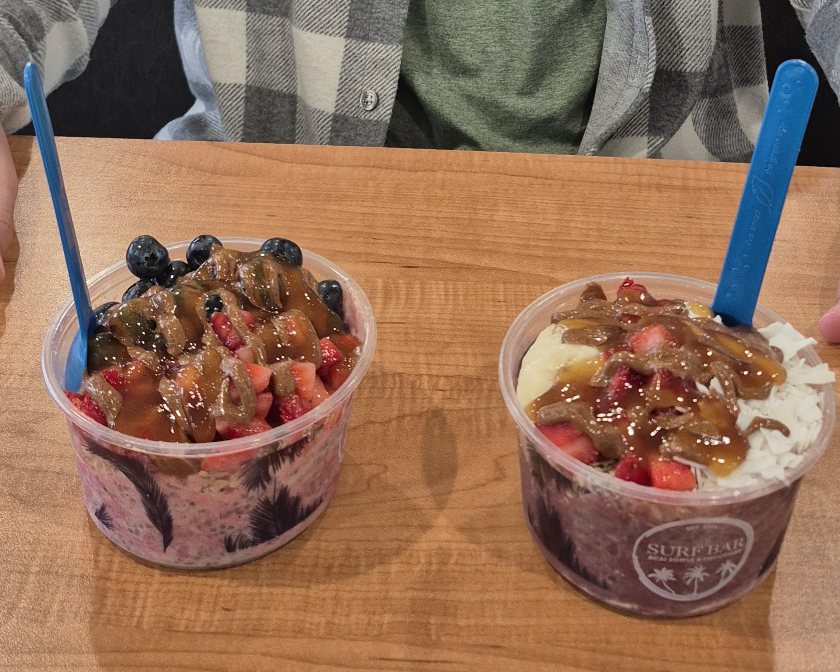 I had the Piña Punch smoothie and the Wolf Bite oatmeal. The oatmeal had freshly diced bananas and vibrant blueberries and good layer of granola and honey; the smoothie had those same fresh flavors!