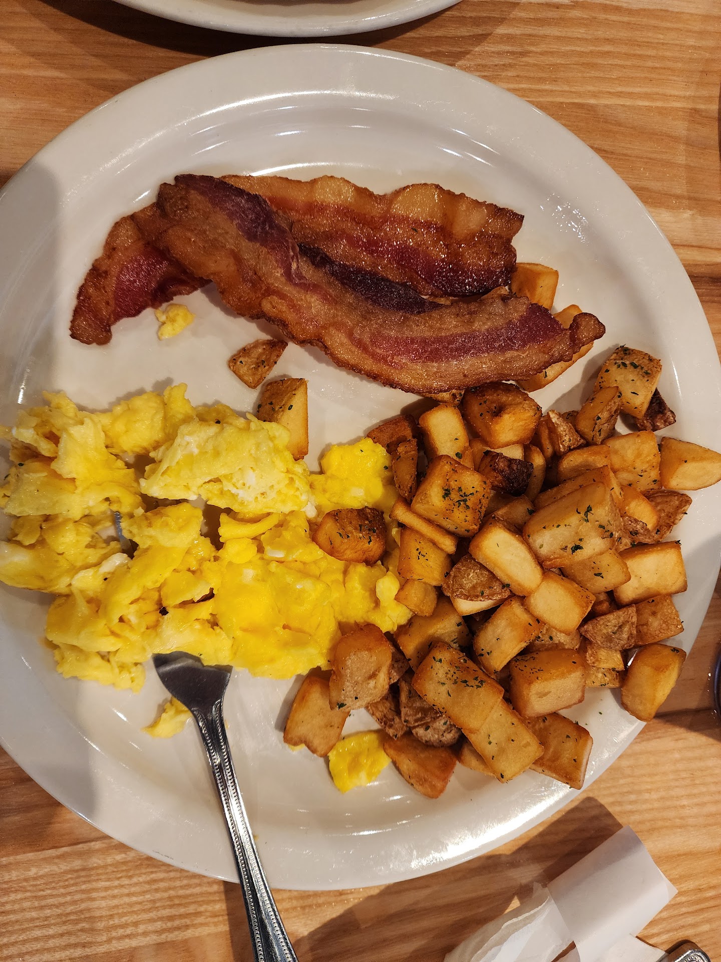 The first time we placed our to-go order was around the time they opened. On top of missing items from some meals (like sausage and bacon), we were also missing an entire meal and some of our items were burnt. We tried to call to get this resolved with no luck. We chaulked this up to them being busy but we weren't quick to go back.