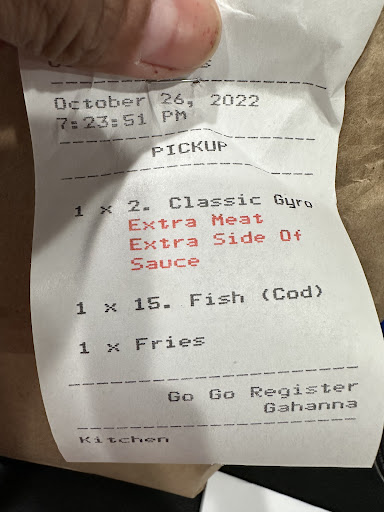 Read moreFor the second time in a row after ordering the # 2 gyro I got home to discover the lamb was severely overcooked, salty, and tasted like cardboard. Plus there was no gyro sauce which made it a dry and nasty mess. On top of that disappointment, the extra sauce that I ordered and paid for was not in the bag! (Second time in a row my order was not complete.) The last time I ordered through DoorDash The food was not up to par. Actually gross. I thought if I actually went into the establishment to place an order, it would be better. It was not. When I got home and realized how bad the order was (and the extra condiments that I paid for were not in the bag, again) I called and calmIy described my customer experience and was treated rudely by someone who claimed to be the manager. It was especially disturbing, because I never asked to be refunded, I didn’t ask for a new order, I wasn’t being rude. I simply called to inform them of how bad my order was and was hoping they could correct the mistakes. Used to be a great gyro place but now they do NOT care when people spend their hard earned money and only want what was paid for!!I suggested Maybe they could put a little bit of effort into making sure they get the order correct because that was the second time in a row. Incredibly the manager basically called me a liar and insisted my order was correct while I’m standing there in my kitchen, looking at the hot mess they gave me. Thanks to the manager’s rudeness and the terrible gyro, I WILL NEVER SPEND MY HARD EARNED MONEY AT GO GO GYRO IN GAHANNA ON HAMILTON RD AGAIN....