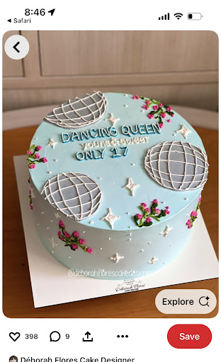 I ordered a cake in advance and provided a picture to the bakery (see the first picture below) which they confirmed they could replicate. The only modifications I requested were changing baby blue to pink and replacing flowers with more stars. However, when I arrived for pickup, the cake was not as expected. Instead of the icing disco balls shown in the reference, they placed three tiny plastic disco balls in random spots. There was also no writing on the cake initially.