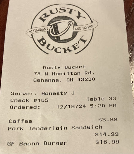 In conclusion, The Rusty Bucket in New Albany, Ohio, offers a good atmosphere and decent food that is perfect for casual dining. While some dishes may not be exceptionally memorable, the overall experience is enjoyable, thanks to the welcoming environment and attentive service. It’s a place where you can relax, catch up with friends, and enjoy a meal without the pressure of fine dining. I look forward to returning to try more items from the menu and to soak in the friendly...