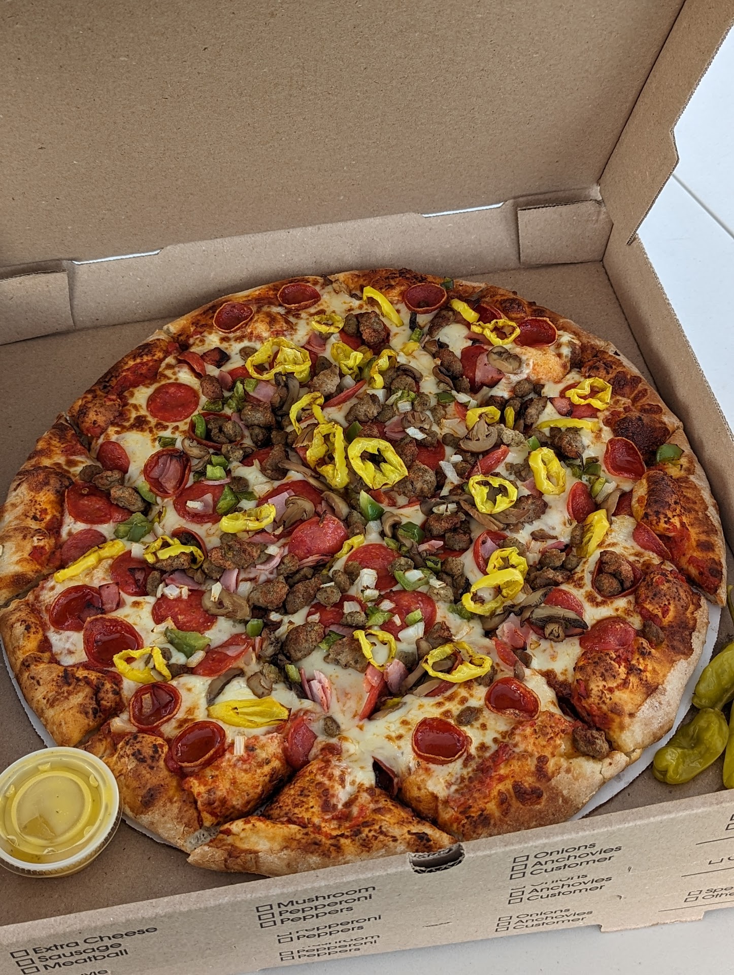 Please take my review with a grain of salt. I'm sure many people would enjoy the pizza. I don't have anything bad to say about it, the style of pizza just isn't my favorite. The crust has a decent flavor but is thicker and the pizza itself is very dense. I've always been more of a New York style pizza guy. We had 11 people eating it and I took a poll for this review and most people...