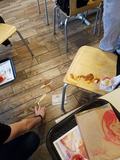 Lady was very friendly but sorry you got my order wrong. My kid was furious he asked for nuggets not a burger. When I went back & nicely asked for a change she argued with me. Ive worked fast food. At Wendys in fact. The hill youre going to choose to die on is nuggets vs burgers!? She was so offended & nasty about it. Mistakes happen. Def said nuggets. (I always offer the choice my kid hates burgers & always says nuggets why I'm so confident he said nuggets) Got rung up as burger. We can move on right?? Nope. My husband asked for bacon & paid for bacon. No bacon. Had to go back & ask. The cheese on his sandwich was not melted-- it seriously was a a solid square of cheese fresh from the fridge so his patty had just been sitting. I had asked for one of my kids to have fruit punch & then changed it to water but got fruit punch. I'd had enough of the attitude & mistakes so we all shared 1 big glass of water. The floor had significant water around pop machines that I was very worried for my elderly grandma & had her walk the long way to our table. Get a dry mop! Or a towel? I can't believe you just let water sit & throw up a sign. There was only 1 table large enough for 5 of us & it hadn't been cleaned. It was just not fun start to finish. You can do better. But you won't. My grandma was in tears. We won't be back which I know Wendy's is just devastated over. 🙄 No one to argue with or make crummy...