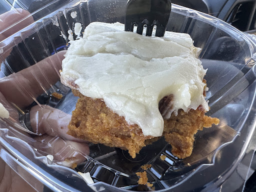 Super cute interior, would work well to come in and catch up with a friend or read a book while enjoying a drink and a treat. I have tried their "Pecan Pie" and "Milky Way" hot flavored coffees. Both were delicious! Our first visit we bought a slice of zucchini bread as well as banana and blueberry muffins. All three were amazing warmed up over the next couple days. We just tried their iced cinnamon roll and it was out of this world! They only bake a certain quantity of their baked goods, daily, so it is important to get their early for a large...