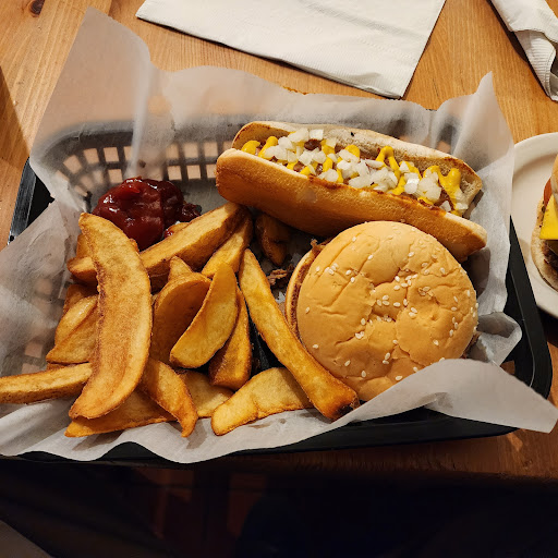 Read moreThis unprepossessing burger joint in a small town is something of a hidden gem. Their burger is a smashburger that seems to be made of onsite ground beef. The pulled pork sandwich is actually a chopped pork with coleslaw and their barbeque sauce. The sauce is not a sweet sauce at all, nor is it mustard, it tastes like a vinegar based sauce but it is so heavily spiced that the spices make it thick. Their sides are large portions, and they are very large. The coney dog is a skinless hot dog with a wonderful chili sauce, diced white onion and yellow mustard. The chili sauce is a cut above, the dog is nothing special, but altogether it is a great hot dog.