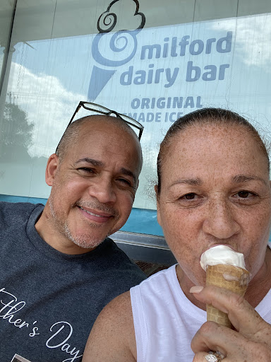 Quick back story: My wife and I moved to Milford 3 years ago. We have two children 2.5 and 1 year olds. I grew up in a city atmosphere and love the community feel of Milford. Today I took my daughter on a Daddy/Daughter date for pizza and ice cream and it started raining when we got our pizza. I drove around Milford looking for a place we could stay outside and eat and thought of Dairy Bar because they have a tent to protect against the rain. I got there and nobody else was there besides the owner and his daughters, who I found out work there with him. I was concerned because we were going to eat pizza before ordering our ice cream and thought someone might be upset because we brought outside food to eat there. A few minutes into me and my daughter sharing pizza, the owner came out, and instead of running us away he personally thanked us for stopping by on a rainy day. He asked me how long I lived in Milford and told me how he has daughters that went through the school system and how proud he was of them. He laughed with my daughter and made our day better. We then got some delicious ice cream and brought some home to Mom. It's people and things like this that make Milford and the world as a whole a better place. It is also a testament to how if you treat people with love and respect, you may earn yourself a customer/friend for life. My family and I will never go elsewhere for ice cream and will recommend Dairy Bar every time...