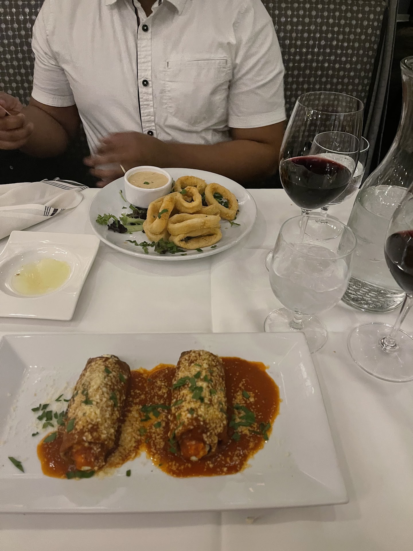 The hostess explained how we could either get a paper menu or access the menu on our phones, we chose to use are phones. Server took are drink order and we received a perfectly made Cosmo and Goose and soda. Great start. Took are dinner order, we had the Escarole, Bean & Sausage Stew which was perfect to warm us up. We had Rolled Chicken with prosciutto, fontina Cheese, Spinach with a Mushroom cognac sauce over Potato Puree, along with Pork Ossobuco. Both entrees were prepared perfectly and exceeded my expectations, The Pork Ossobuco was the best I've ever experienced.