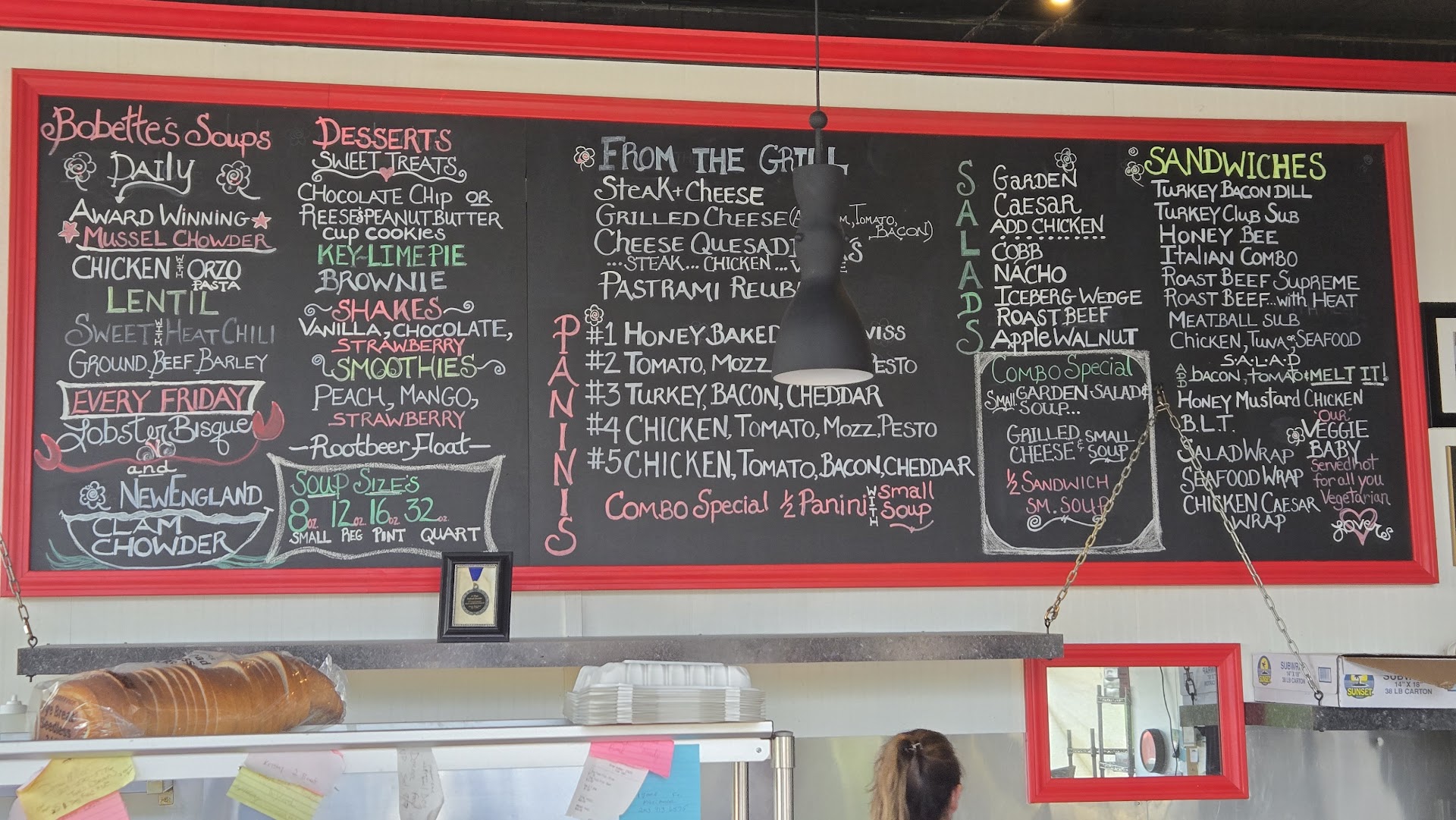 Ofcourse, I have my favorites on the menu, but never disappointed when trying something new. The wide variety of soups they offer daily are yummy and look forward to their seasonal soup specials. If you pick up your order you are always greeted with a friendly smile. If you order delivery online and they are running late or have a question about your order. They pick up the phone and call you and your food is delivered with that same welcoming smile. I've ordered delivery food from many restaurants and the delivery people are great but 8 out of 10 times there was an issue with my order. I have never had that experience with Bobettes. They have never forgotten to put all the items ordered in the bag. I have never had soup leaking and when I order coffee they wrap the coffee cup in plastic and everything is packed perfectly. I've received deliveries from other restaurants food leaking all over the inside of the bag, missing requested item's or not prepared the way I ordered on line. Happy...
